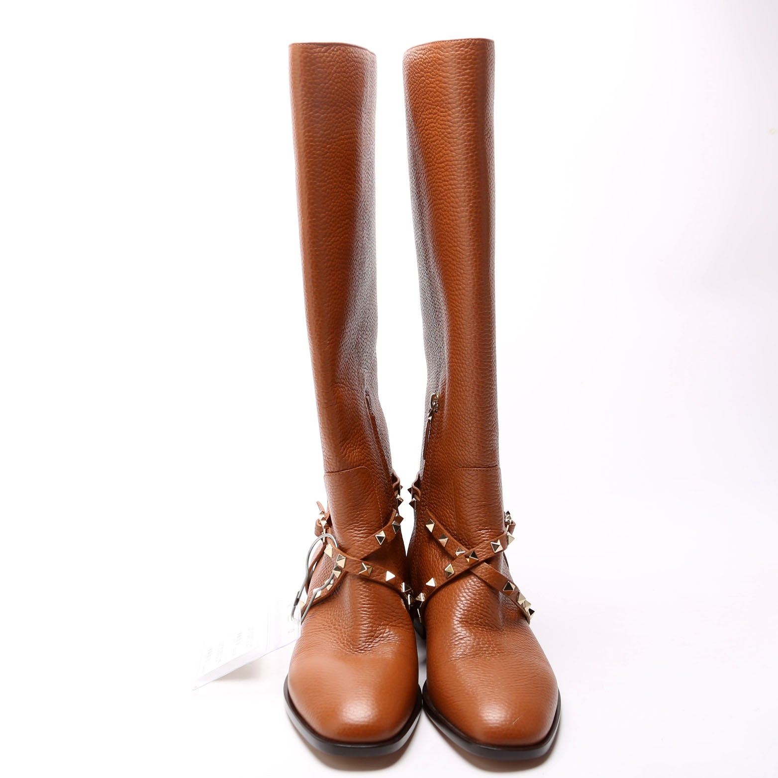 Rockstud Knee High Flat Boots Size 39.5 Brown