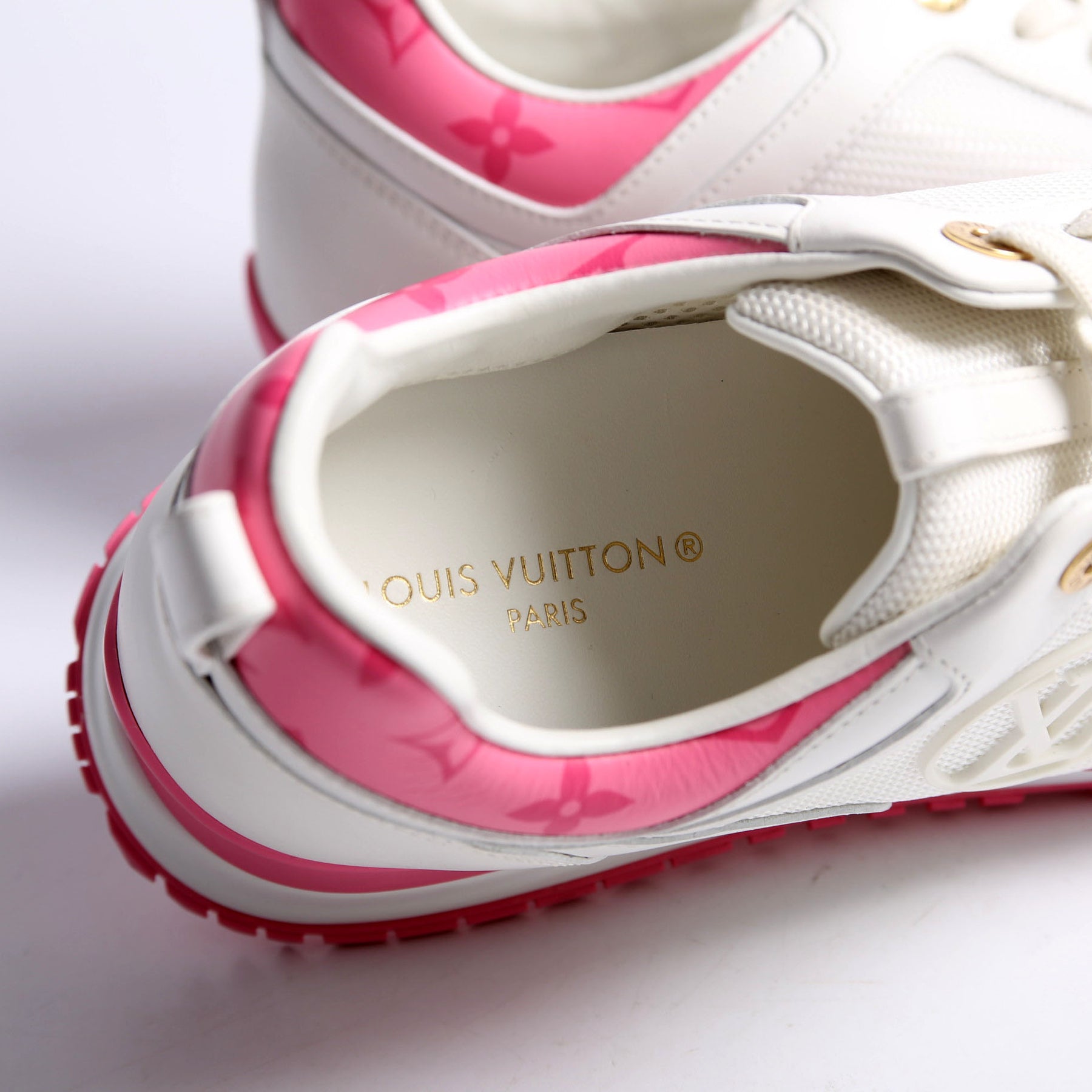 These pre-owned Louis Vuitton Run Away Sneakers are guaranteed 100% authentic.