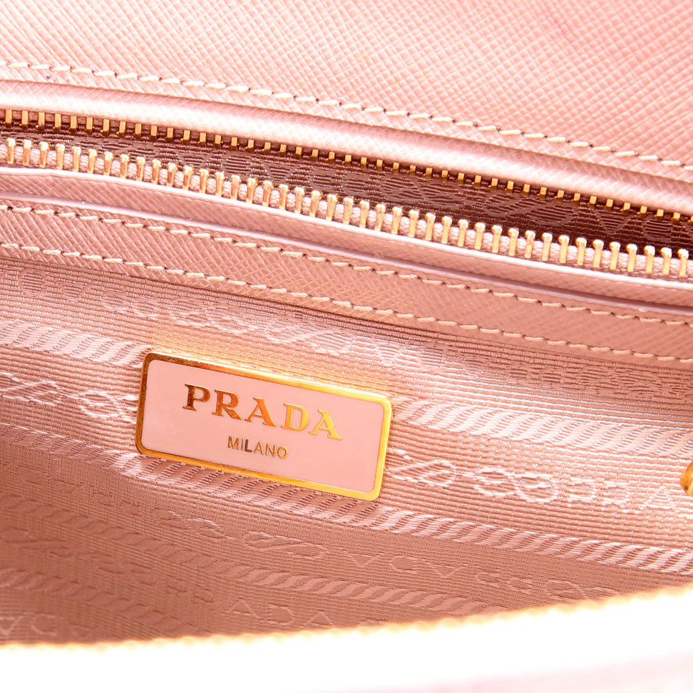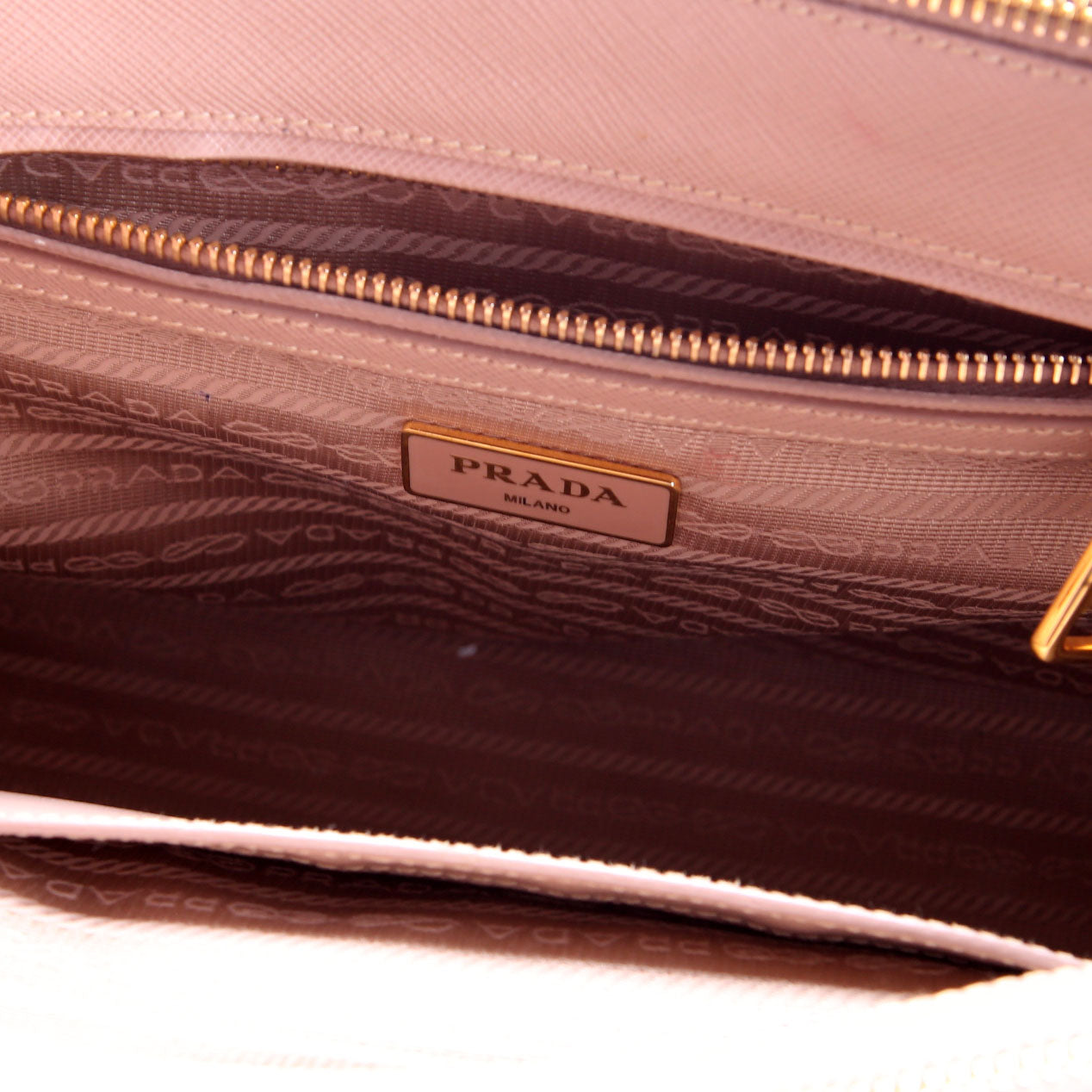 This pre-owned Prada Saffiano Galleria Small is guaranteed 100% authentic. The exterior is in the classic Prada Saffiano Leather.