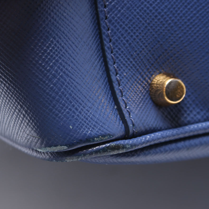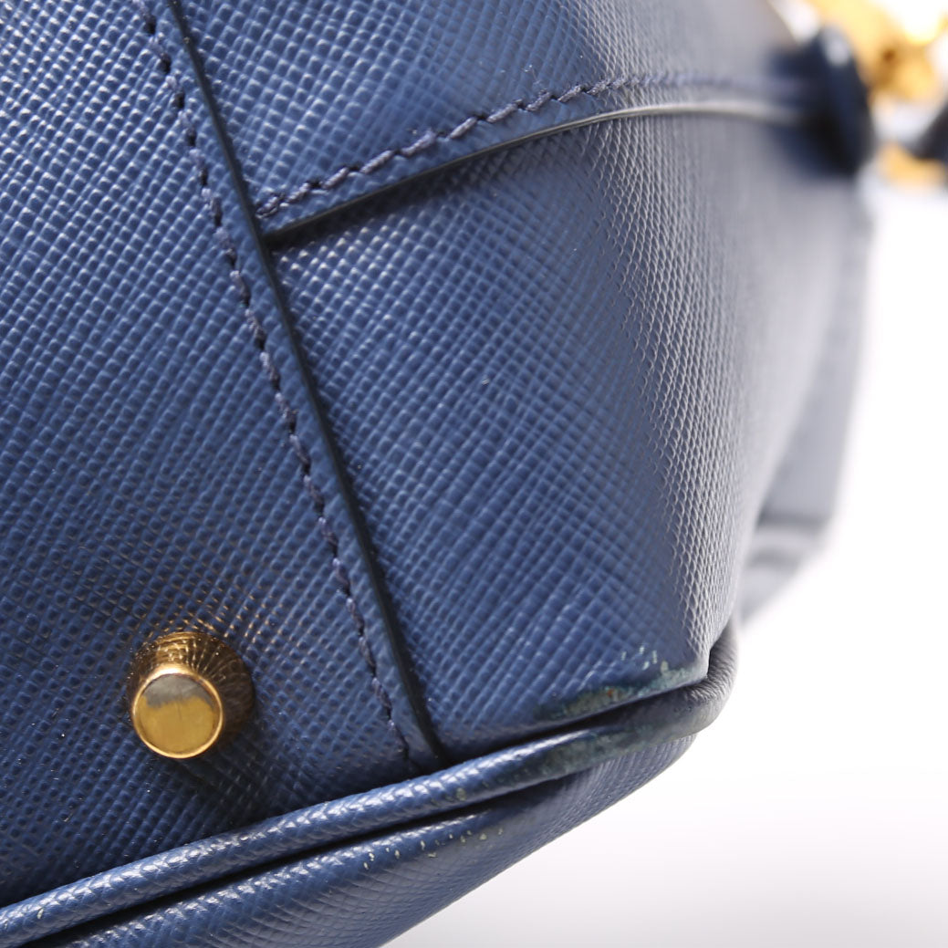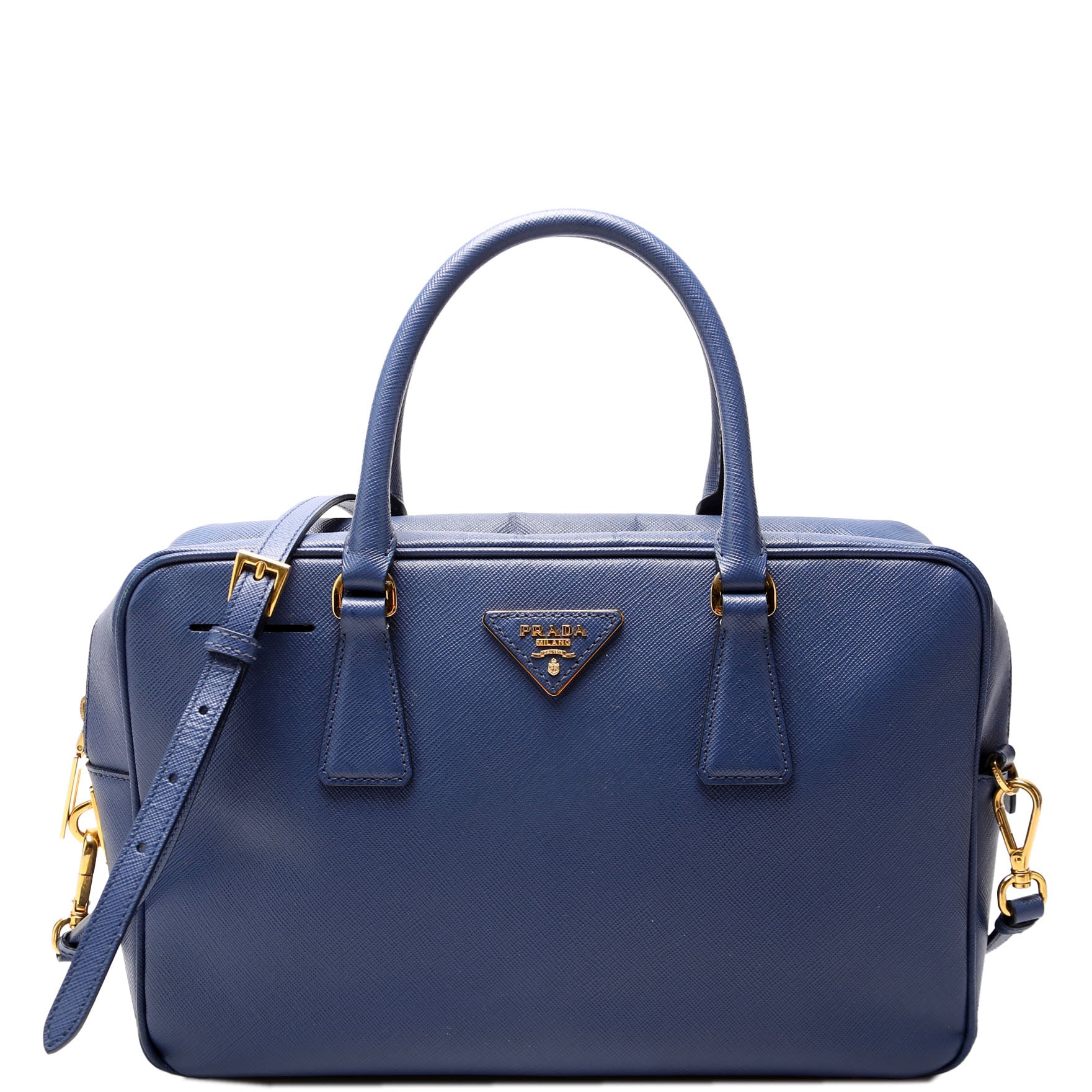 This pre-owned Prada Saffiano Lux Bauletto Bag is guaranteed 100% authentic. The exterior is in the classic Prada saffiano leather.