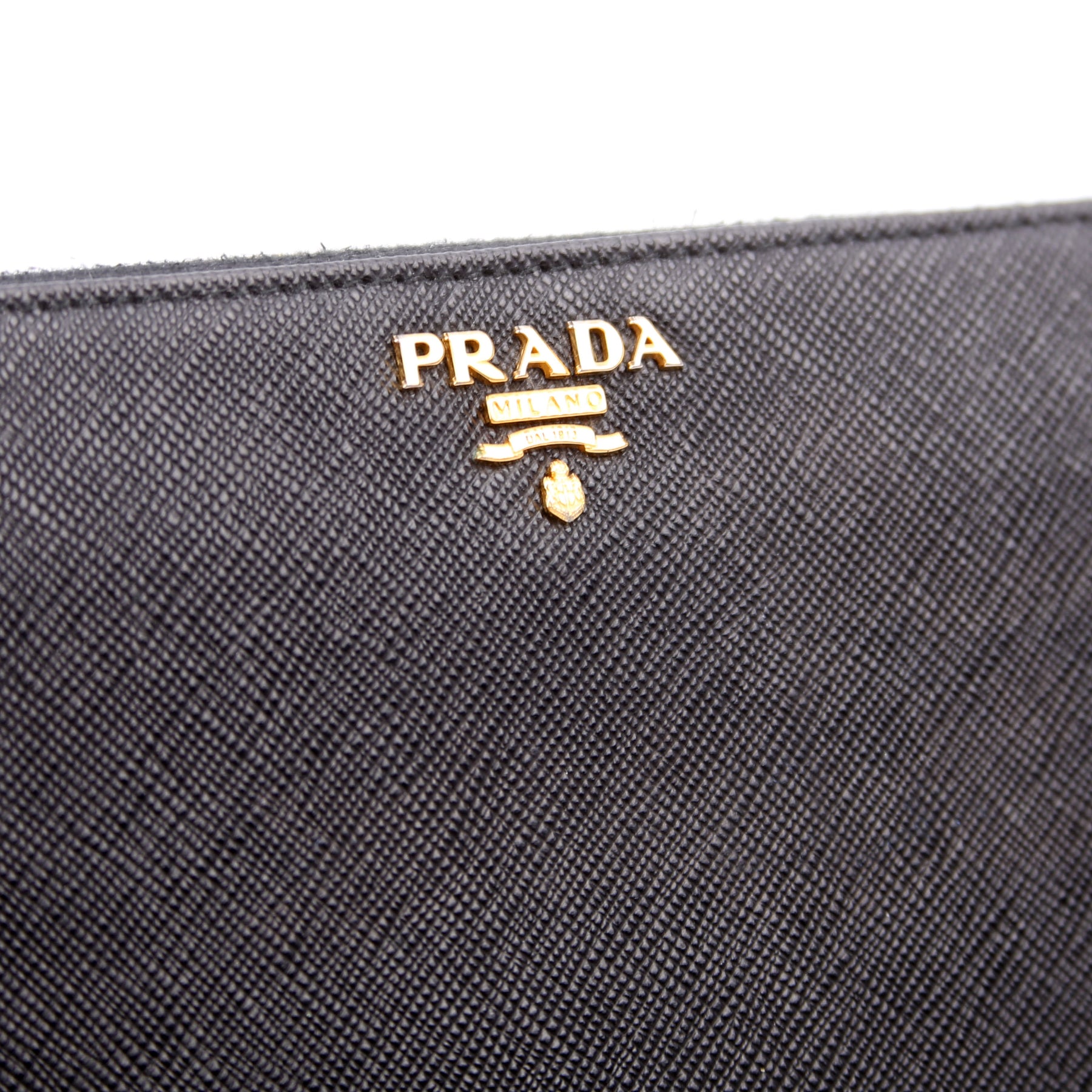 This pre-owned Prada Saffiano Zip Around Wallet is guaranteed 100% authentic. The exterior is in the classic Prada Saffiano leather.
