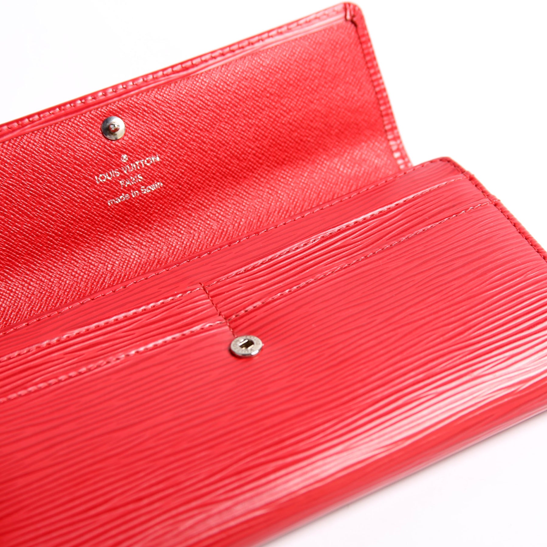 This pre-owned Louis Vuitton Sarah Wallet is guaranteed 100% authentic. The exterior is in the classic Louis Vuitton Epi leather.