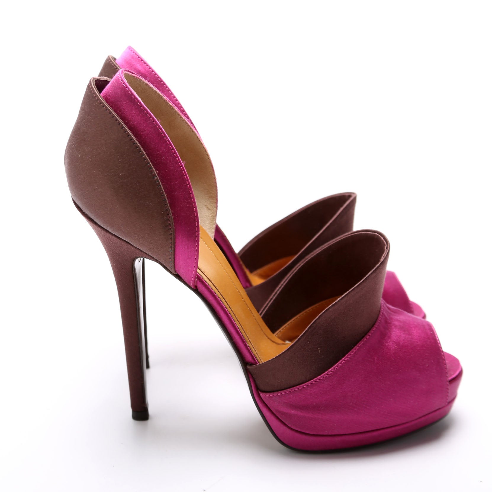 These pre-owned Fendi Satin D'Orsay Peep Toe Pumps are guaranteed 100% authentic.