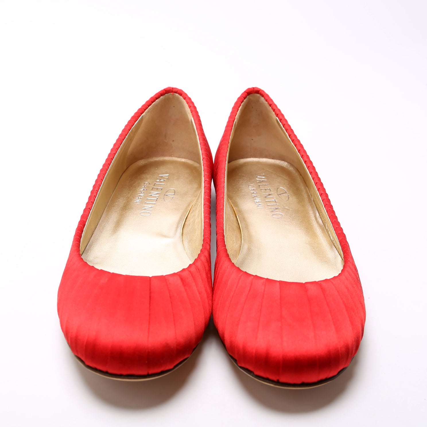 These pre-owned Valentina Satin Pleated Ballet Flats are guaranteed 100% authentic.