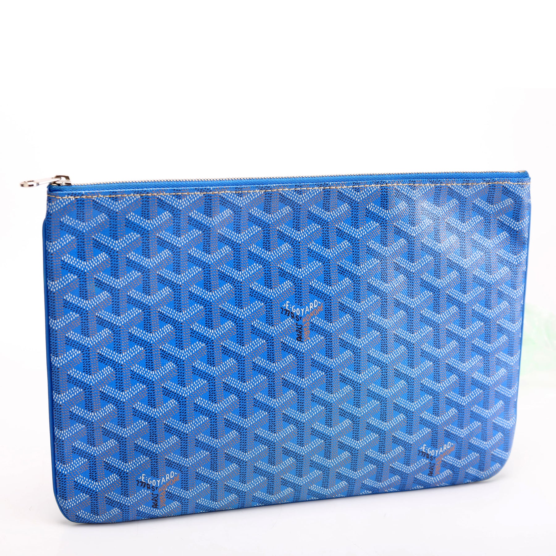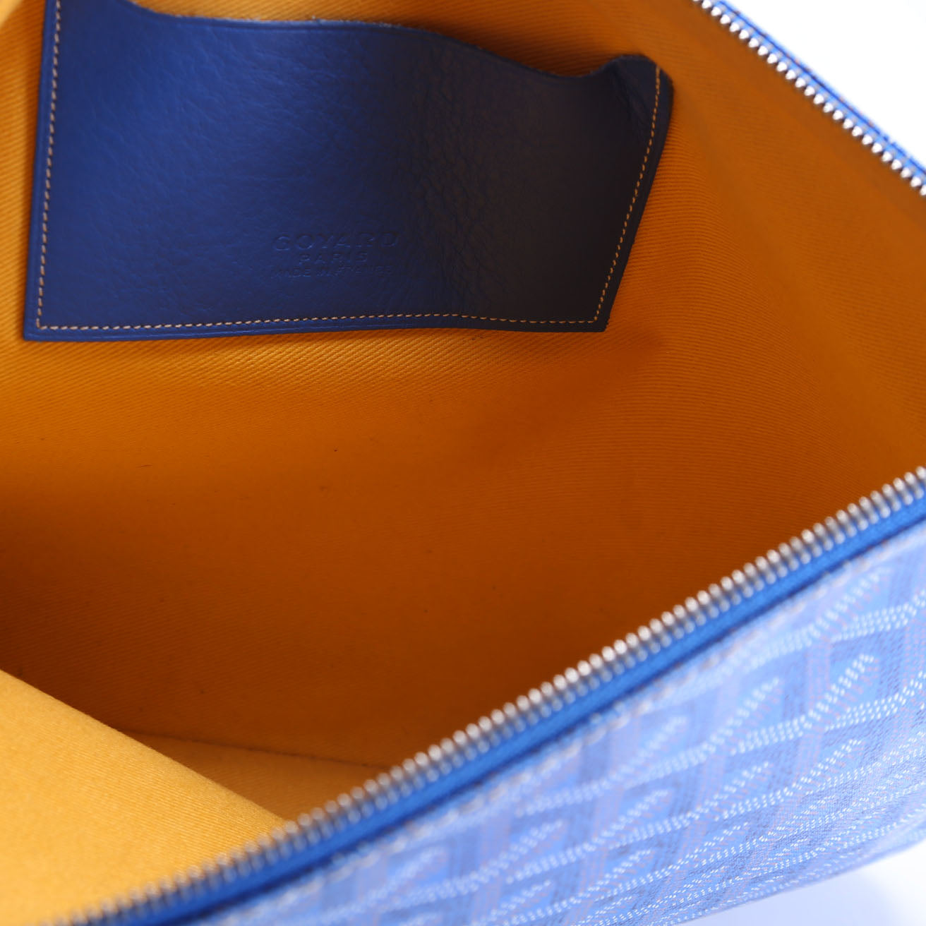This pre-owned Goyard Senat Pouch MM is guaranteed 100% authentic. The exterior is in the classic Goyard Goyardine coated canvas.