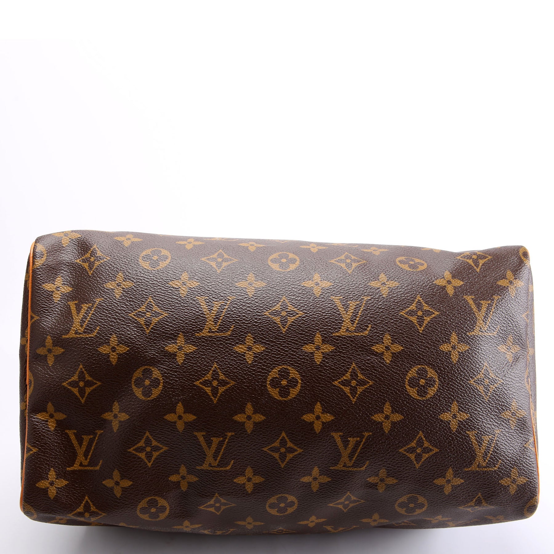 This pre-owned Louis Vuitton Speedy 30 is guaranteed 100% authentic. The exterior is in the classic Louis Vuitton Monogram coated canvas.
