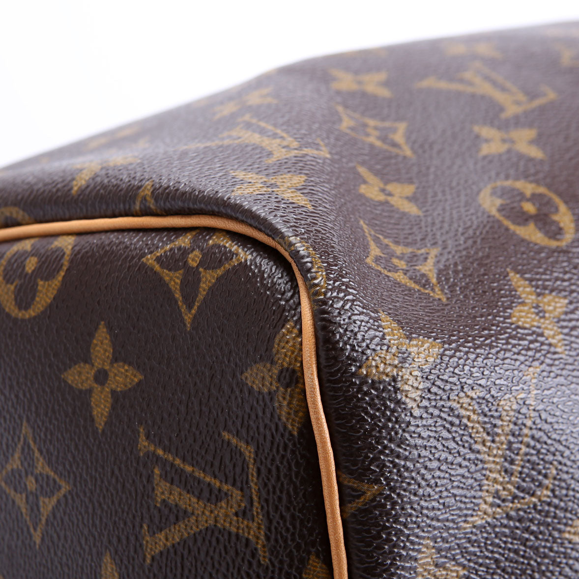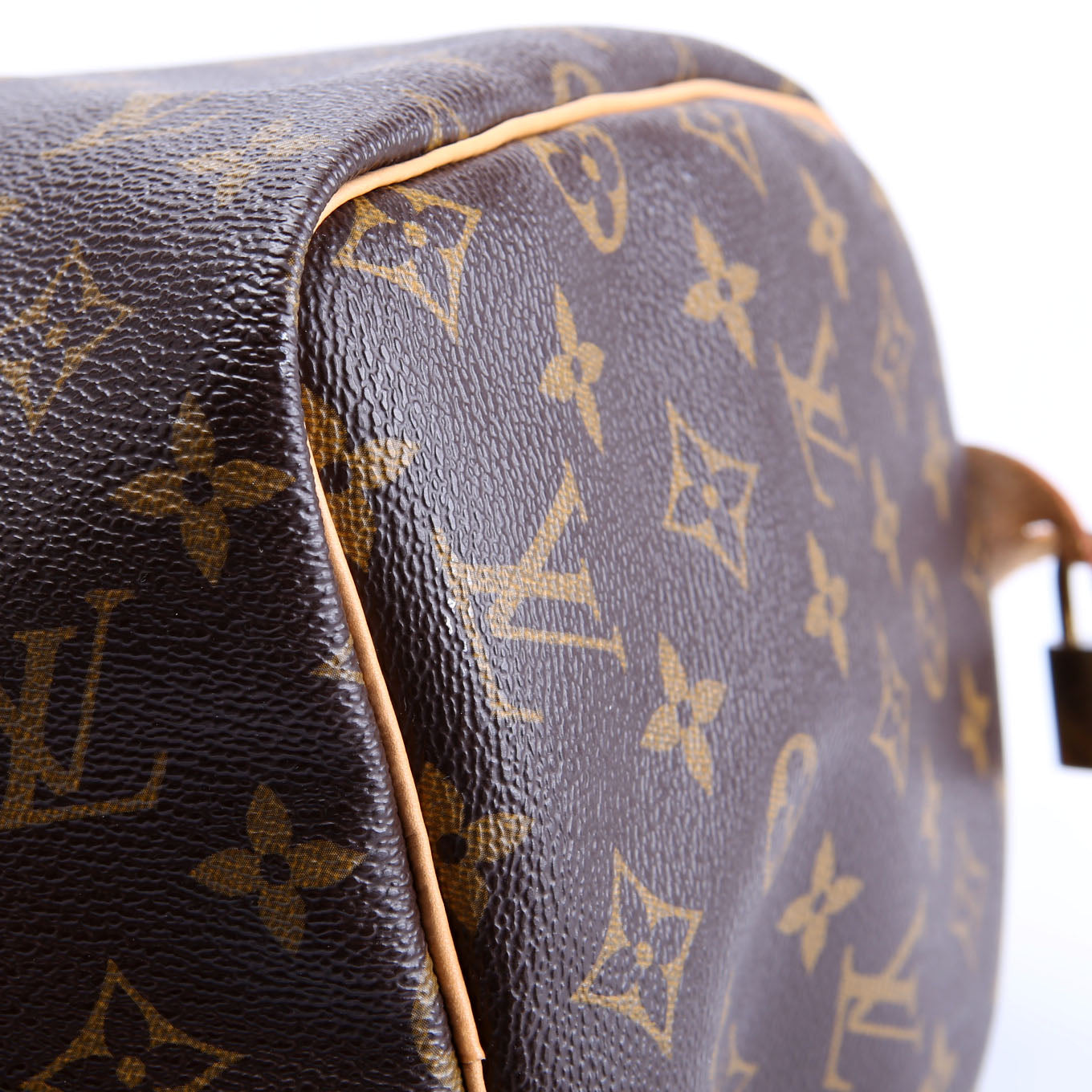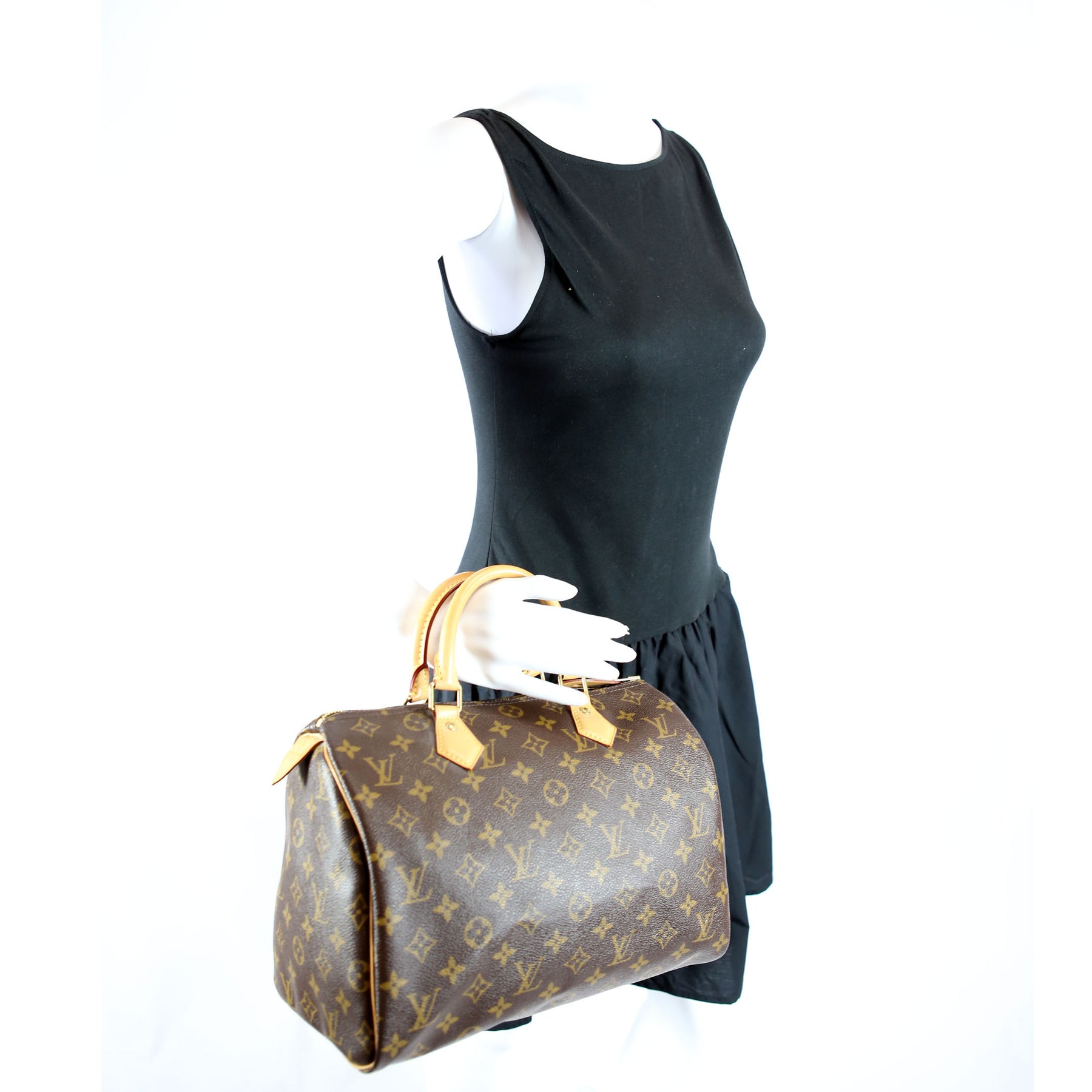This pre-owned Louis Vuitton Speedy 30 is guaranteed 100% authentic. The exterior is in the classic Louis Vuitton Monogram coated canvas.