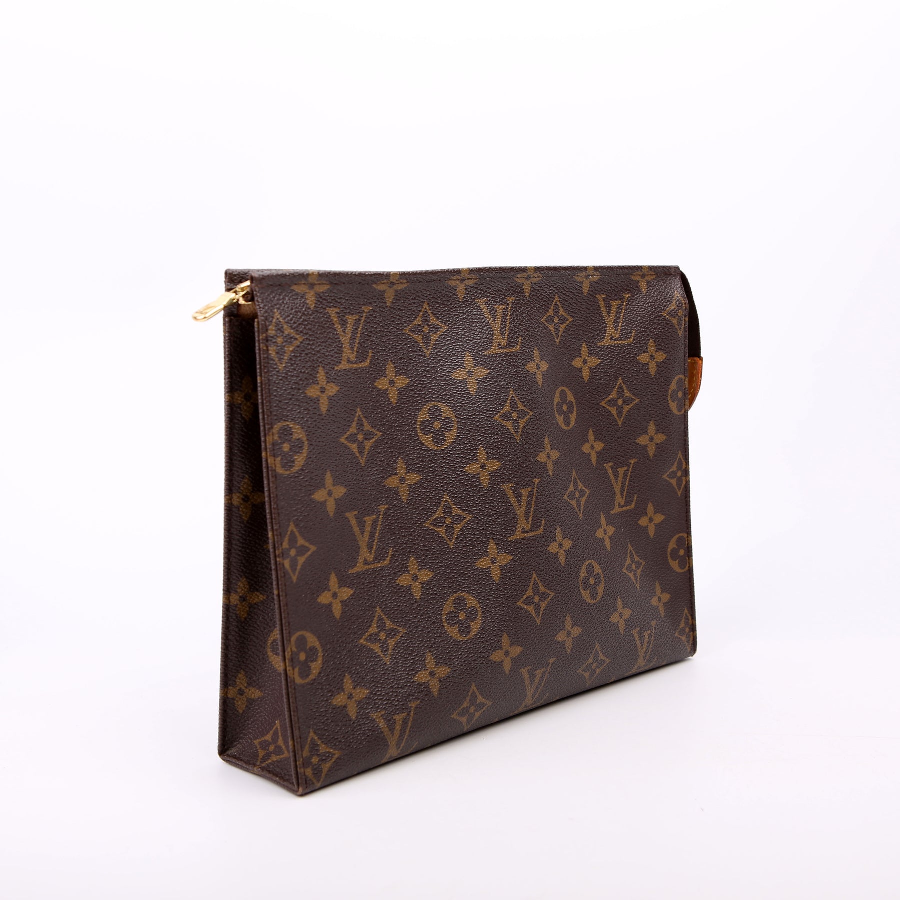 This pre-owned Louis Vuitton Toiletry Pouch 26 Newer is guaranteed 100% authentic. The exterior is in the classic Louis Vuitton Monogram coated canvas.