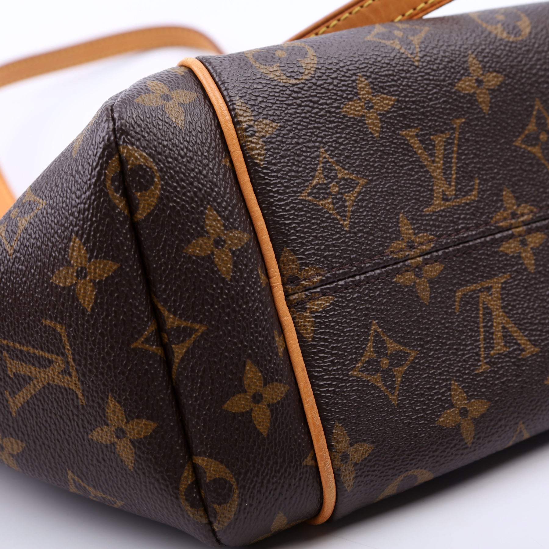 This pre-owned Louis Vuitton Totally PM is guaranteed 100% authentic. The exterior is in the classic Louis Vuitton Monogram coated canvas.