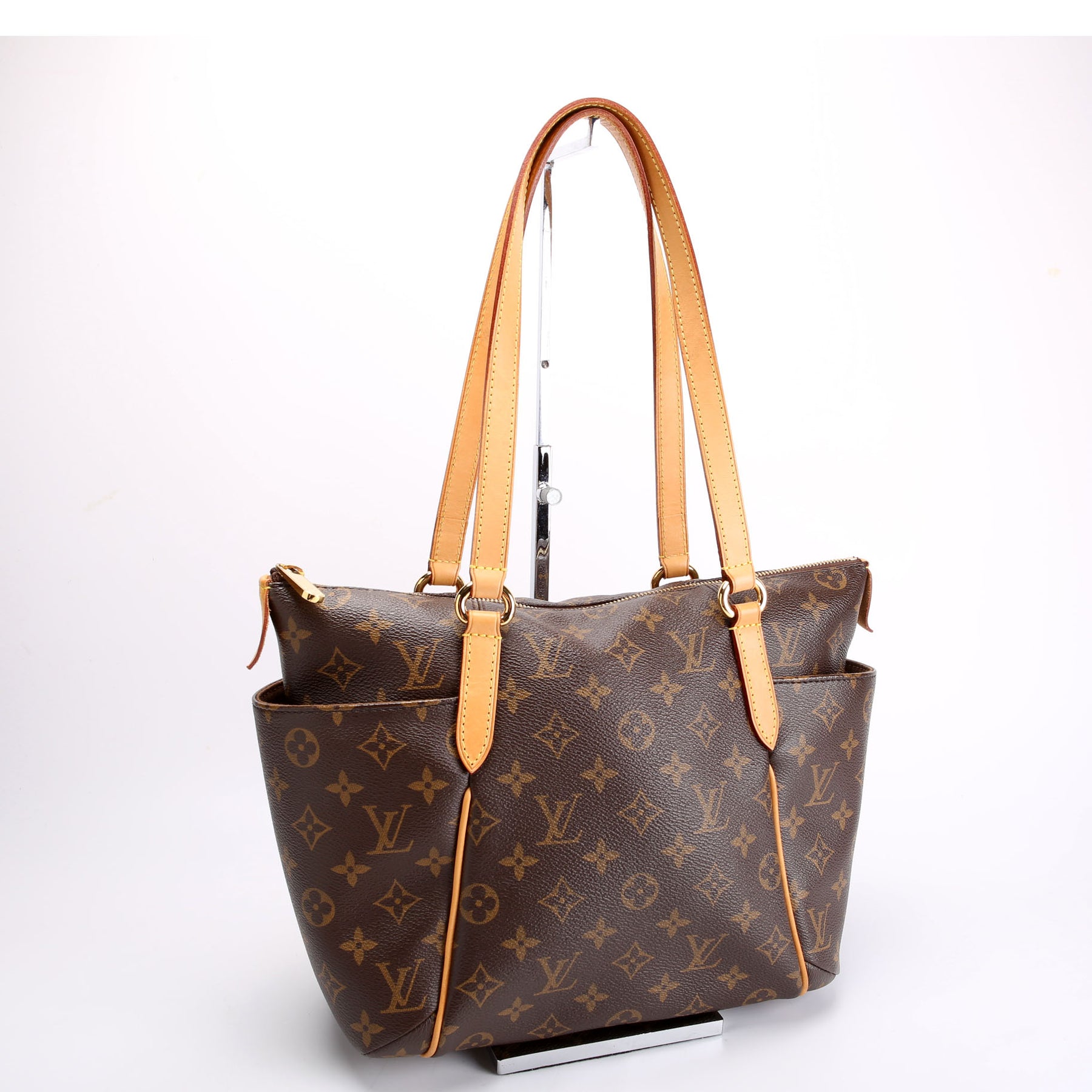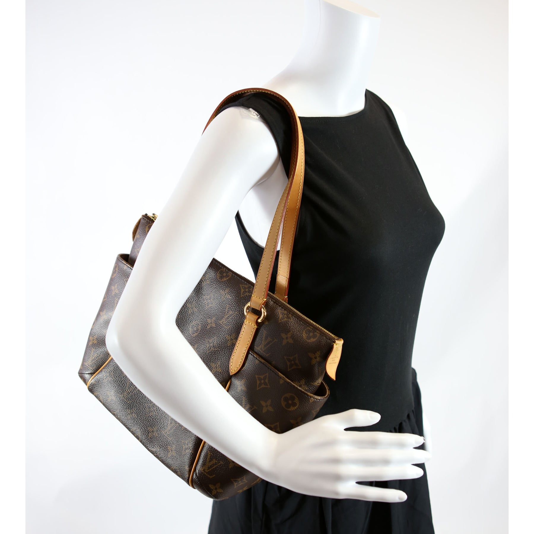 This pre-owned Louis Vuitton Totally PM is guaranteed 100% authentic. The exterior is in the classic Louis Vuitton Monogram coated canvas.