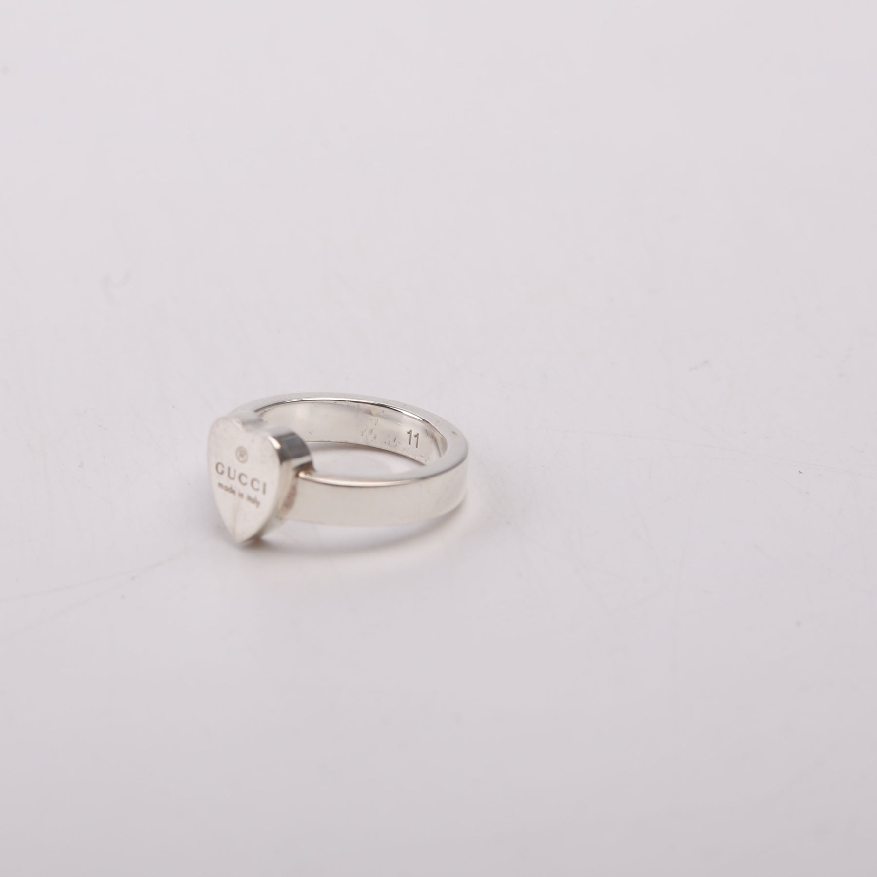 This pre-owned Gucci Trademark Logo Heart Ring 925 is guaranteed 100% authentic.
