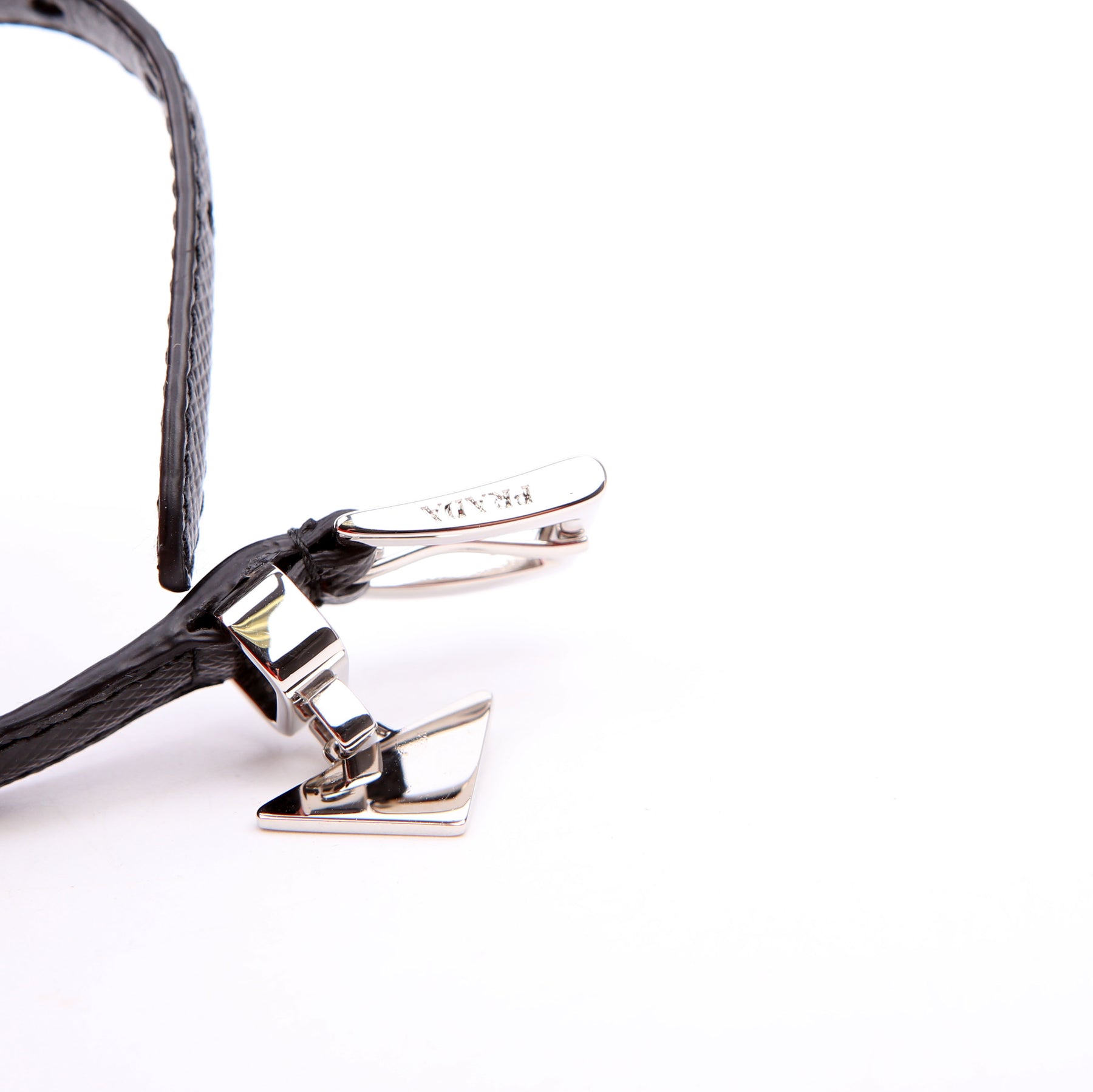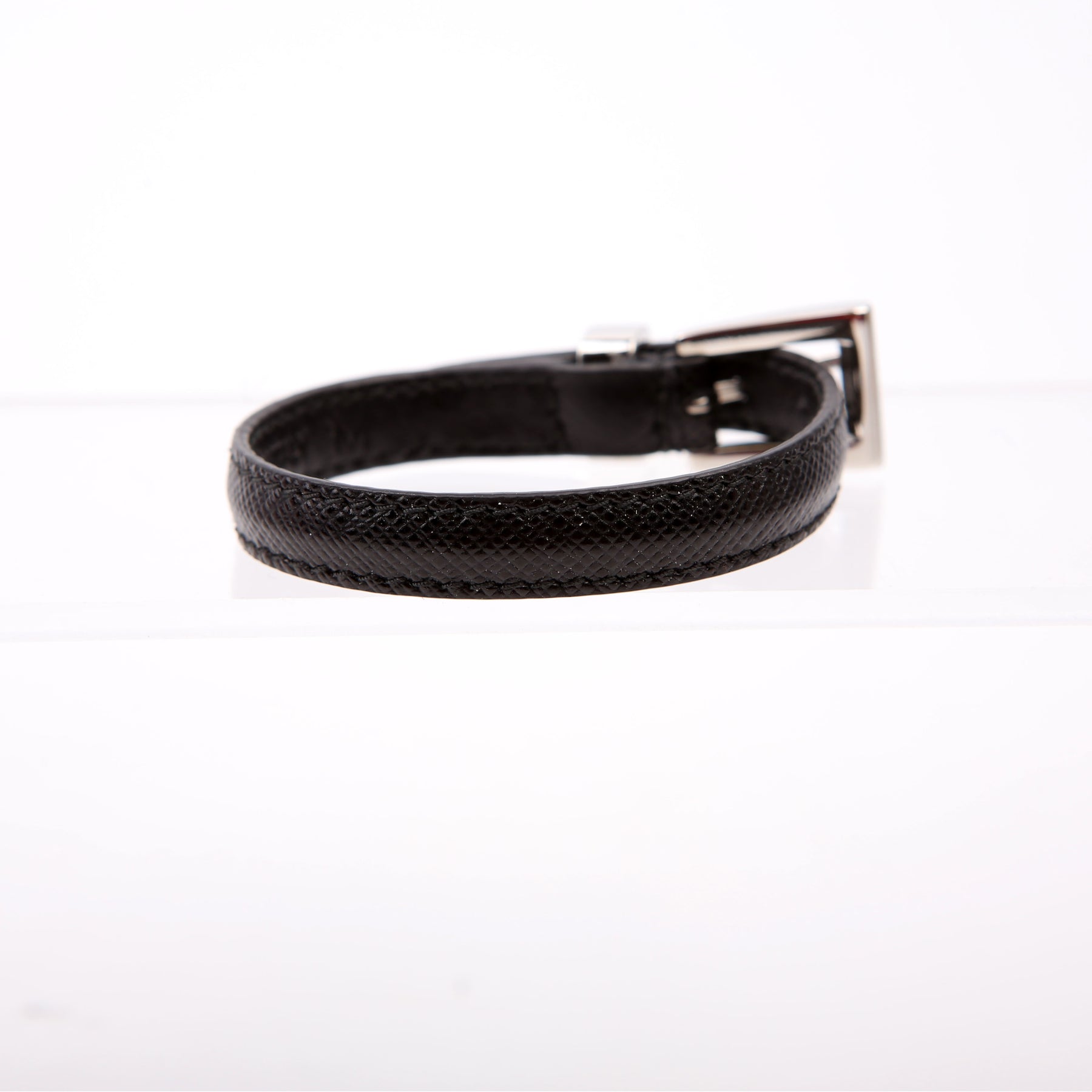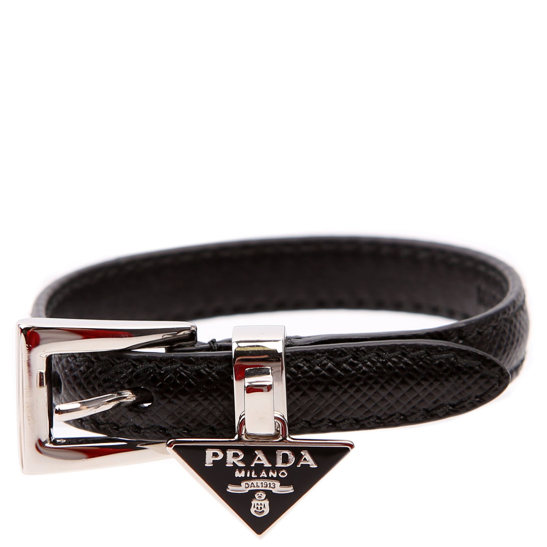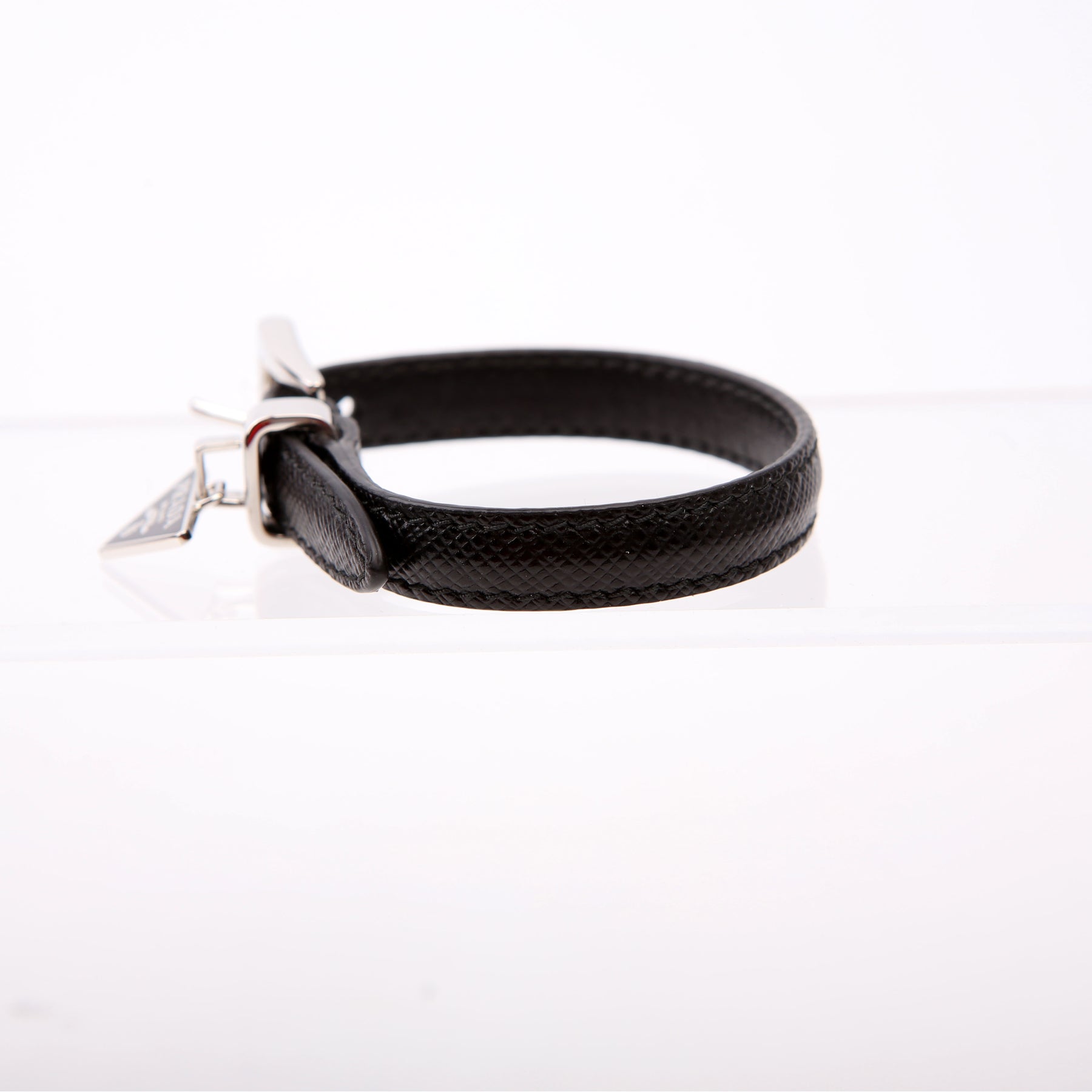 This pre-owned Prada Triangle Logo Bracelet is guaranteed 100% authentic.