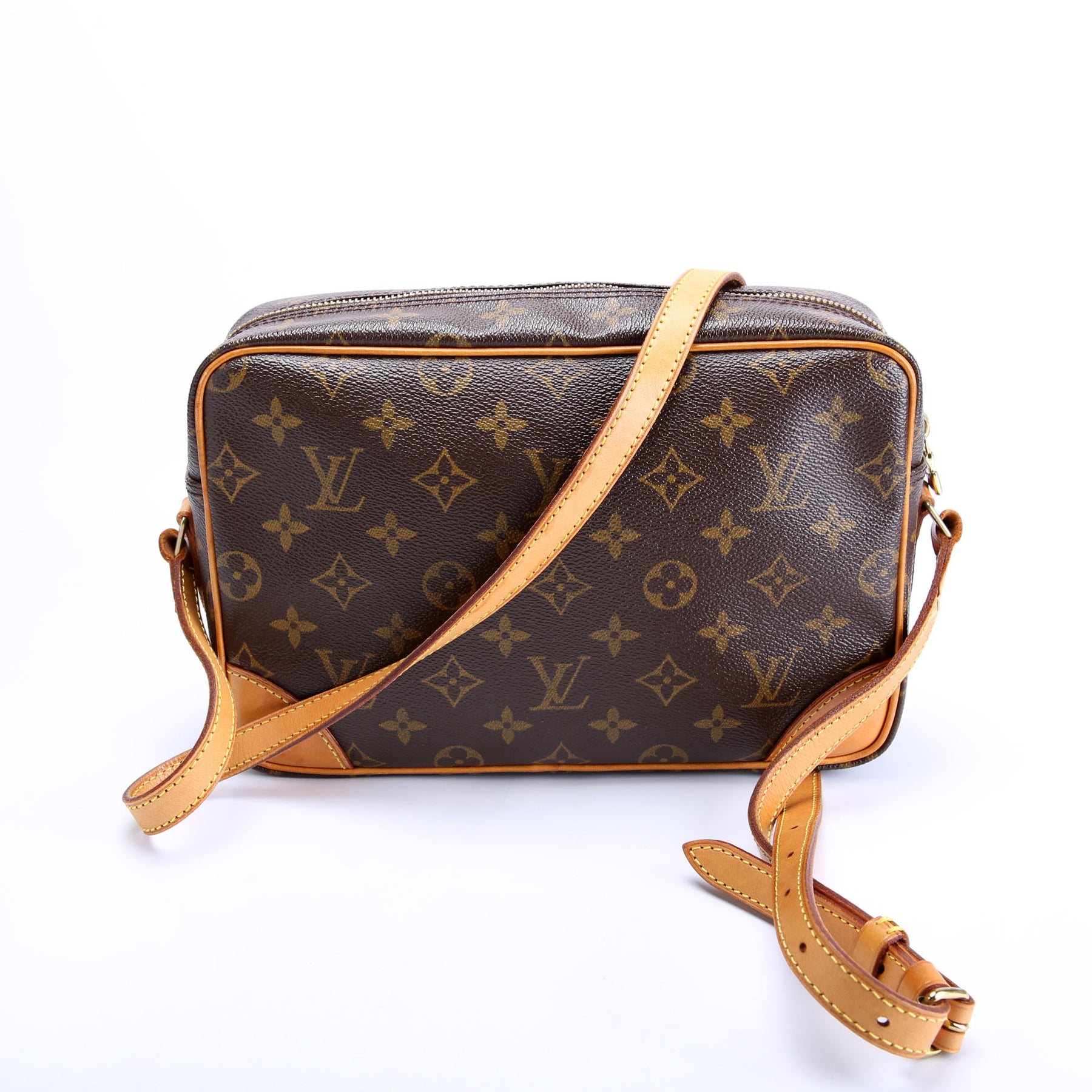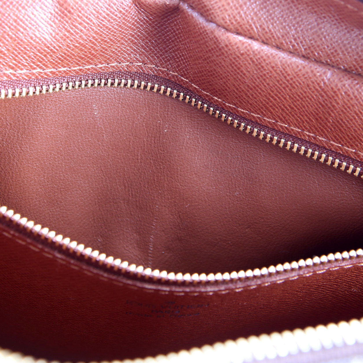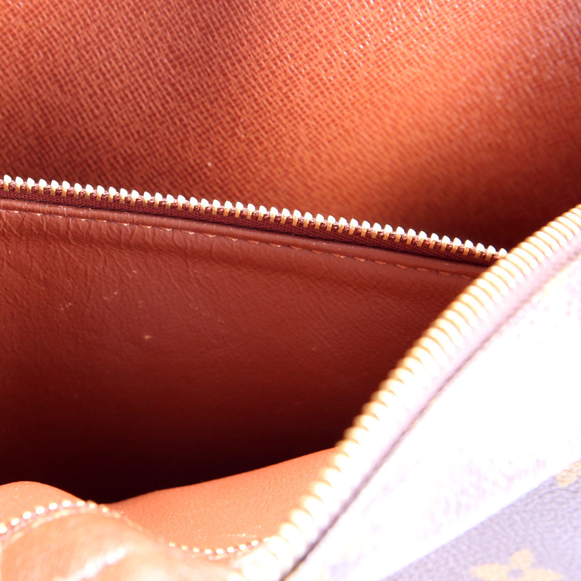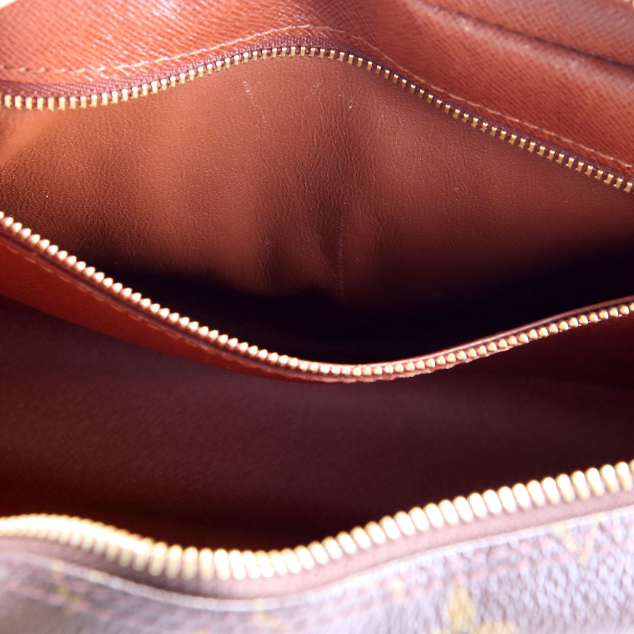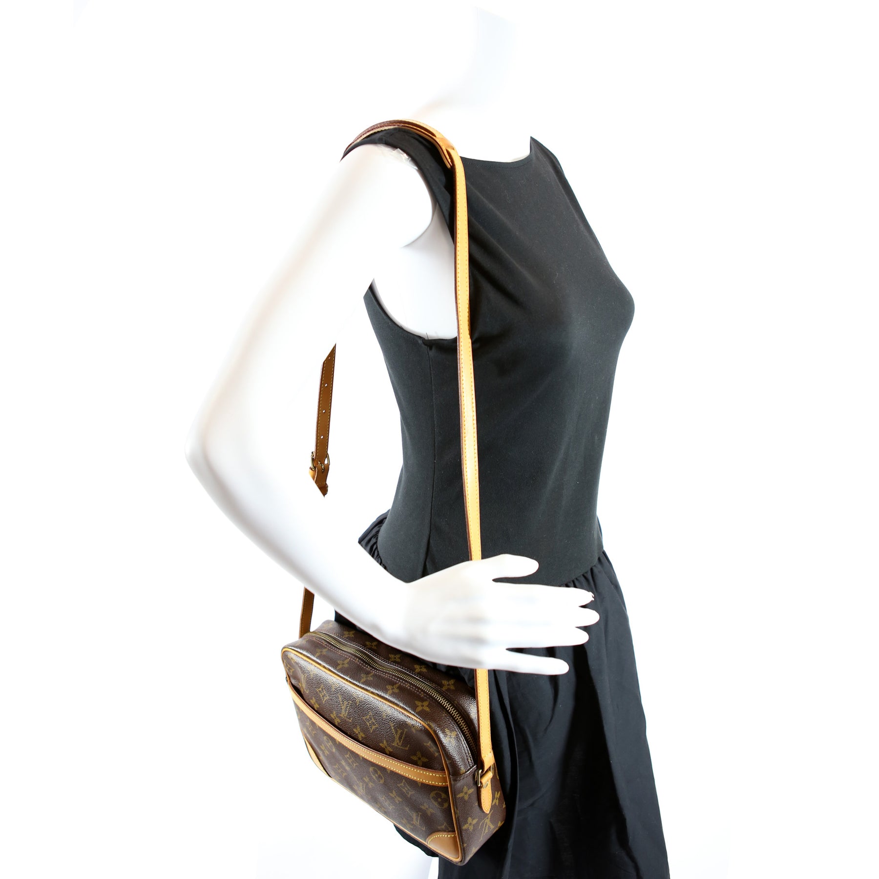 This pre-owned Louis Vuitton Trocadero 27 is guaranteed 100% authentic. The exterior is in the classic Louis Vuitton Monogram Coated Canvas