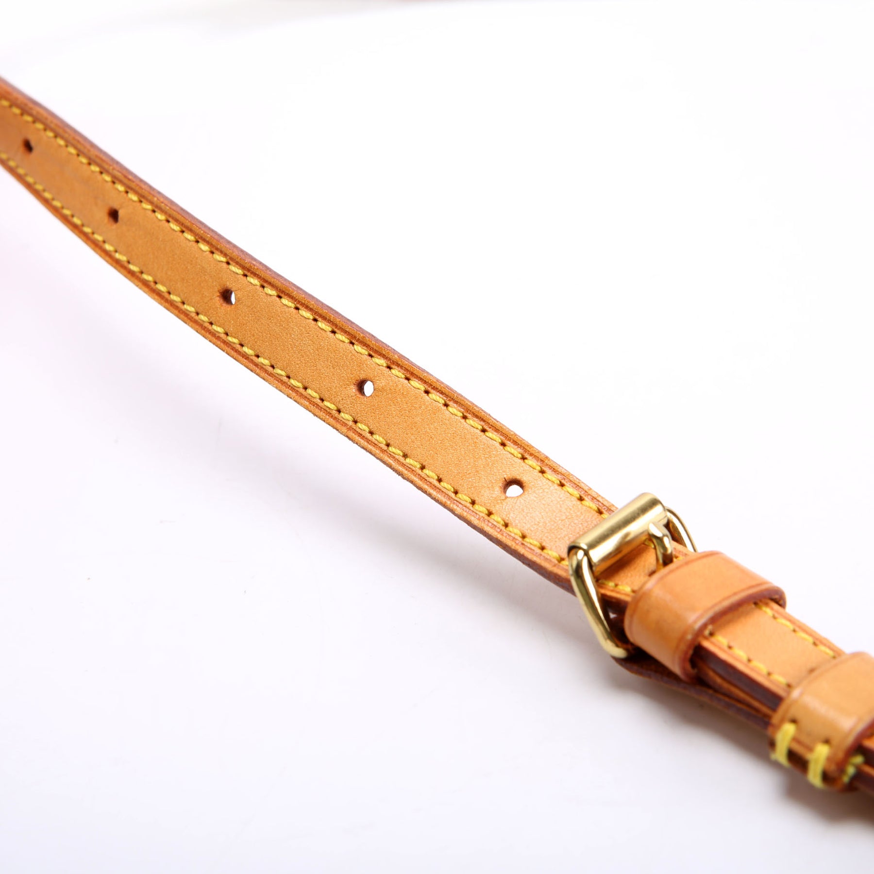 Exterior: The exterior canvas is free from wear. The vachetta shows light scuffs and discolor throughout. The exterior features one open pocket.