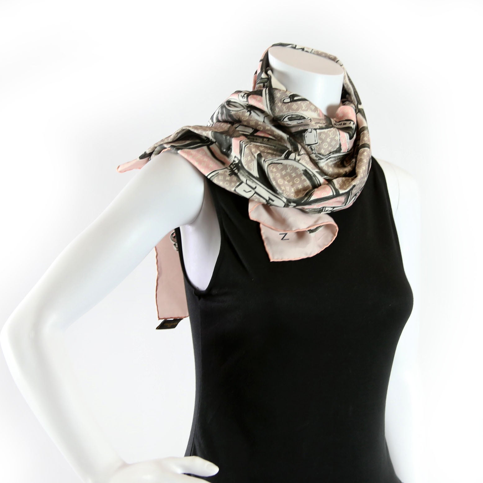 This pre-owned Louis Vuitton Trunks Square Silk Scarf is guaranteed 100% authentic.