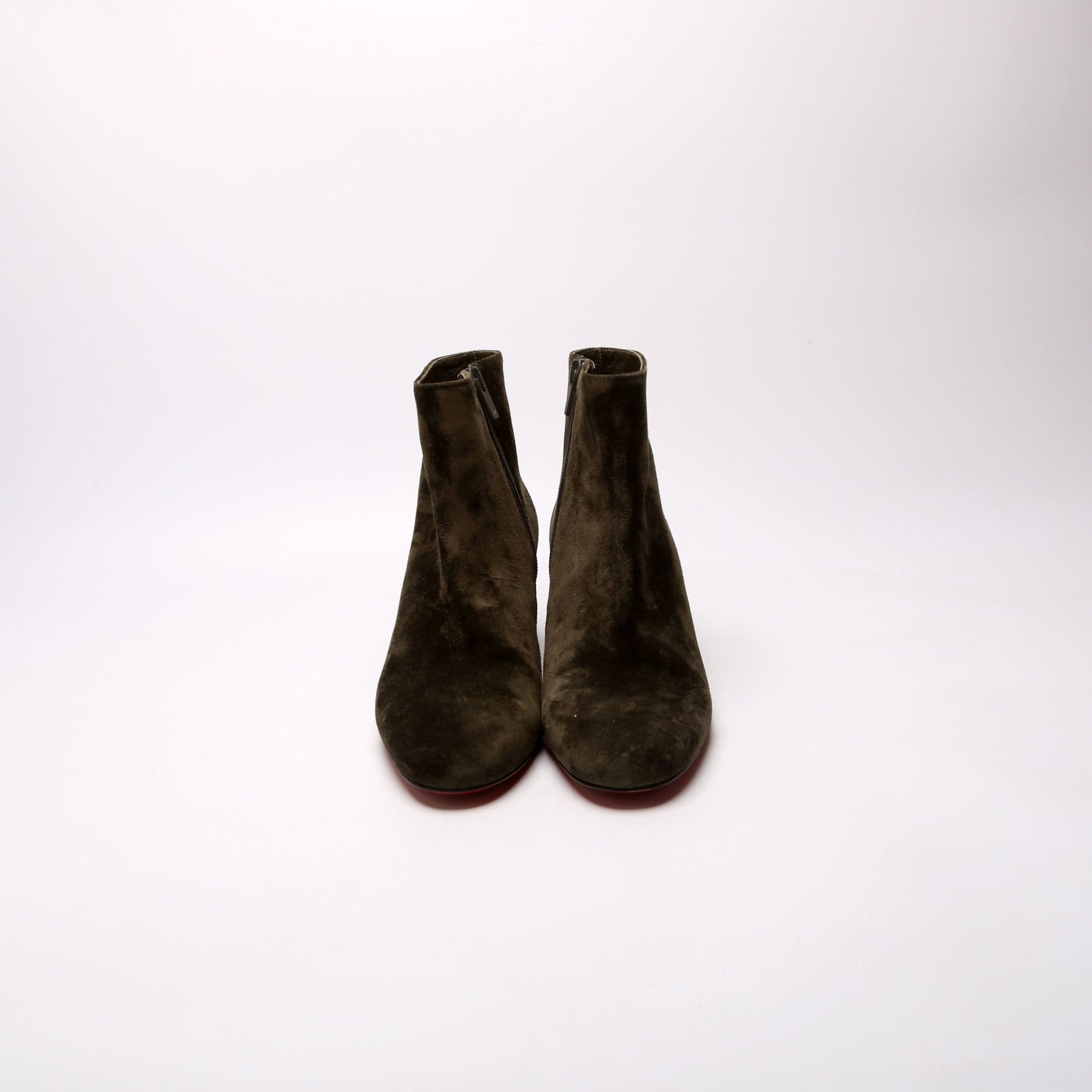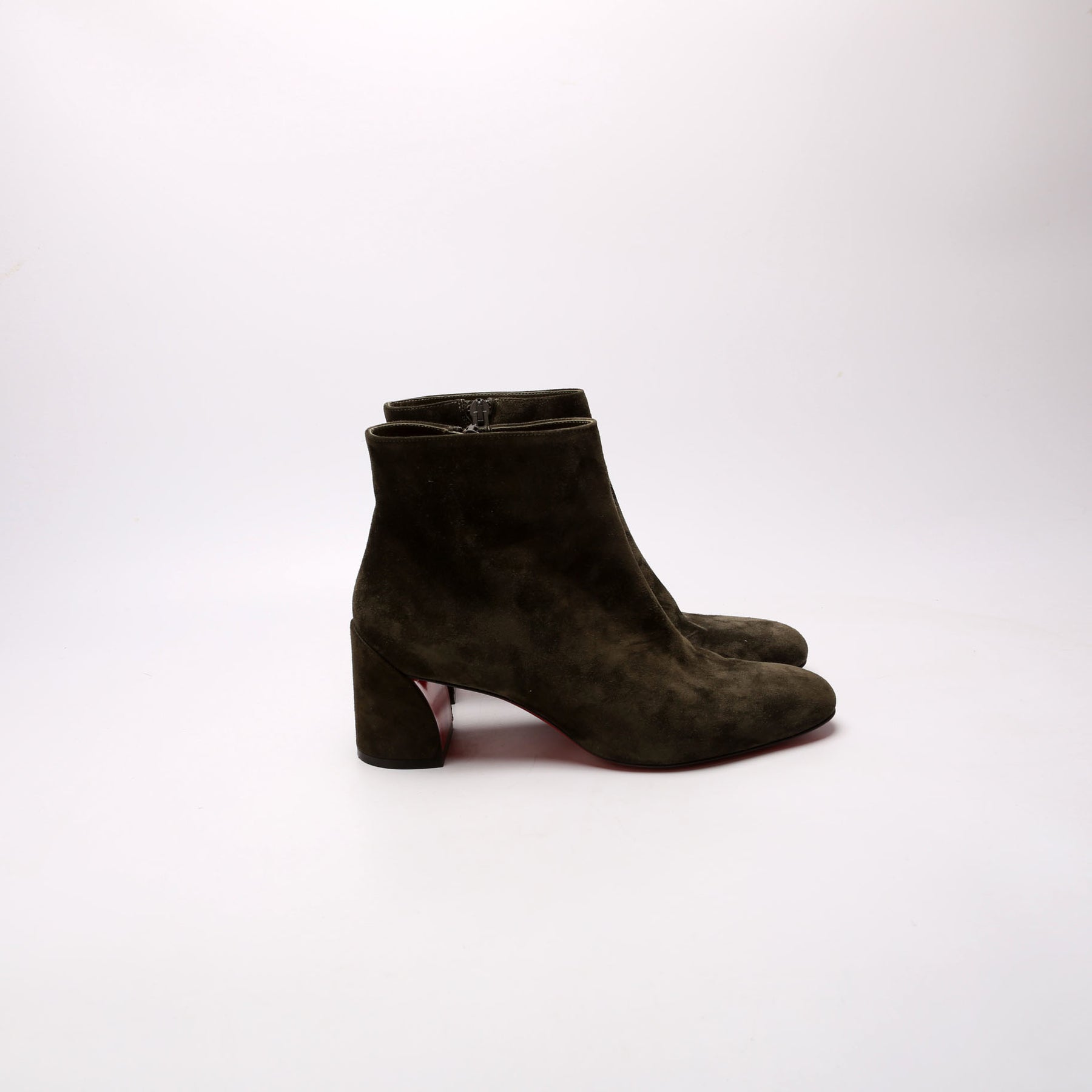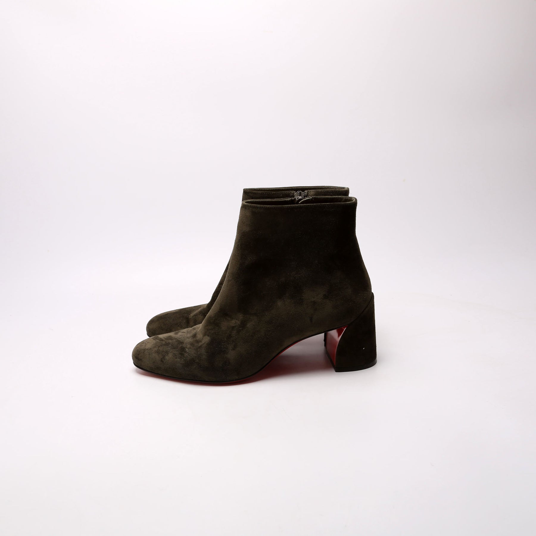 These pre-owned Christian Louboutin Turela 55MM Suede Ankle Boots are guaranteed 100% authentic.