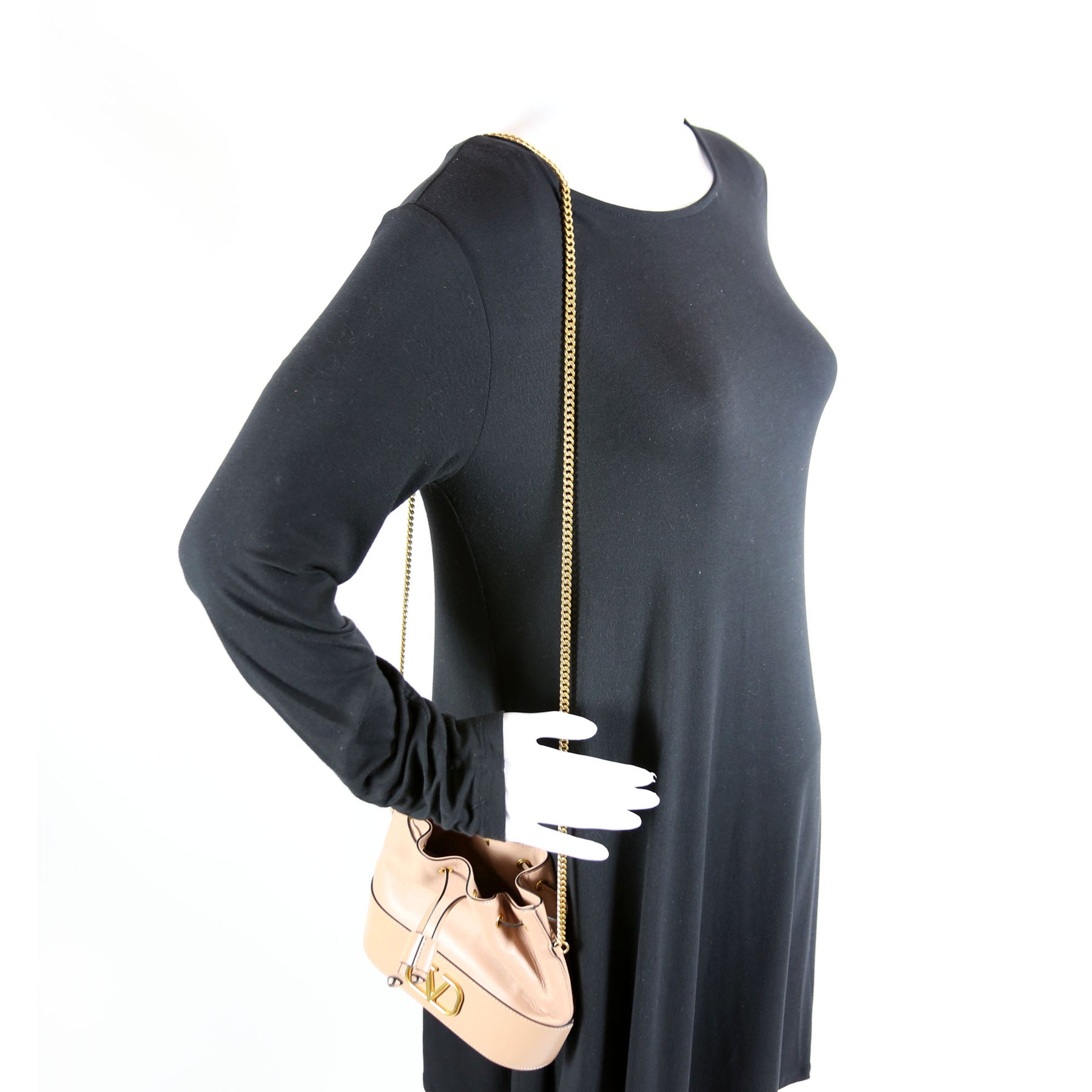 This pre-owned Valentino V Logo Mini Bucket Bag is guaranteed 100% authentic.
