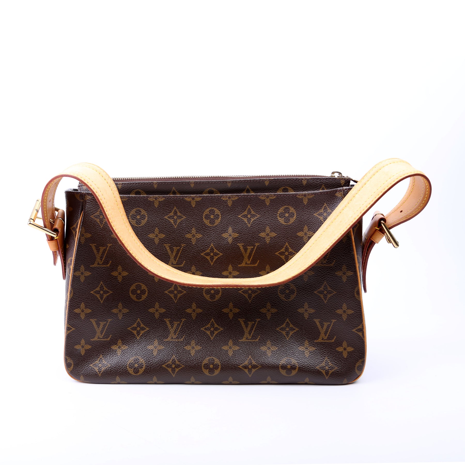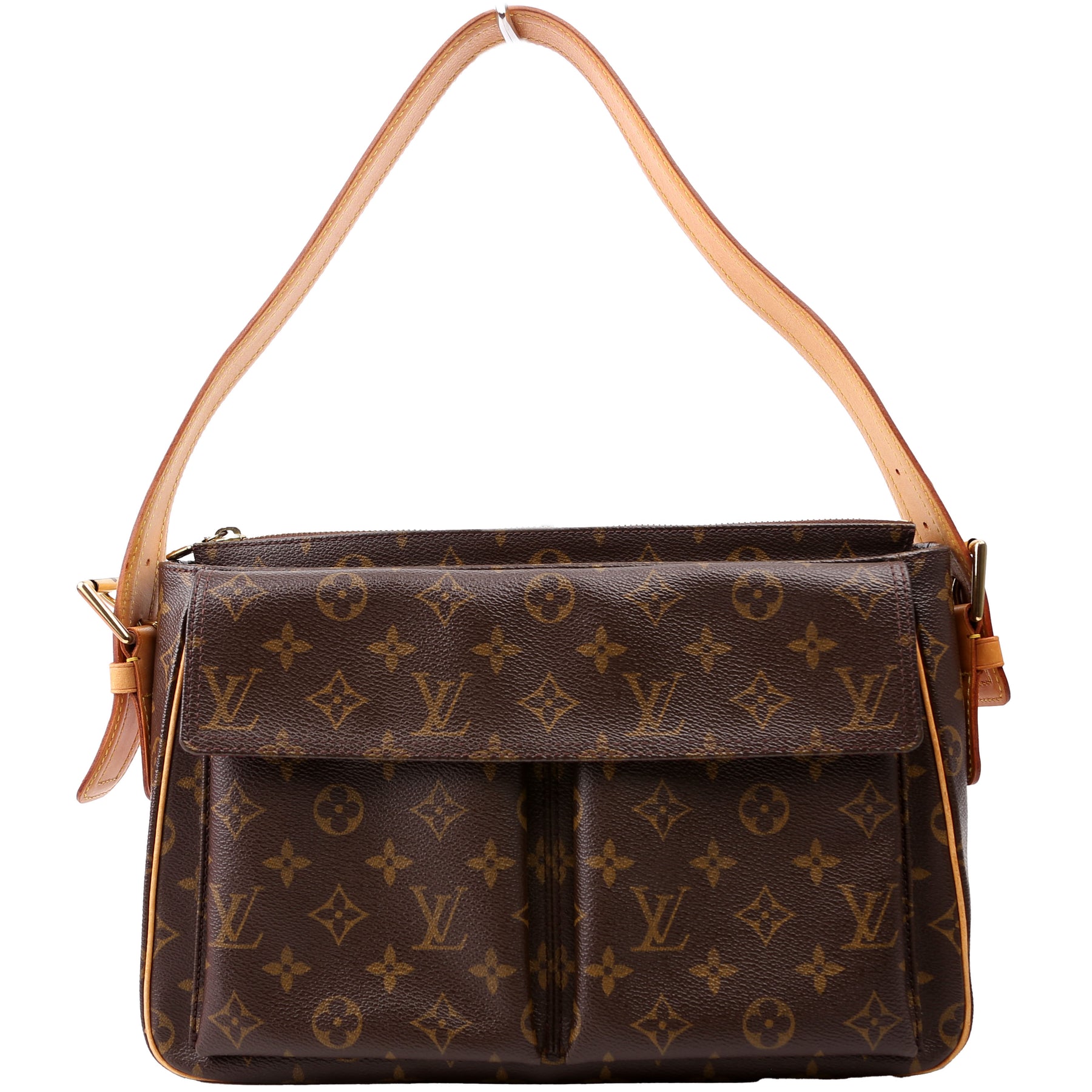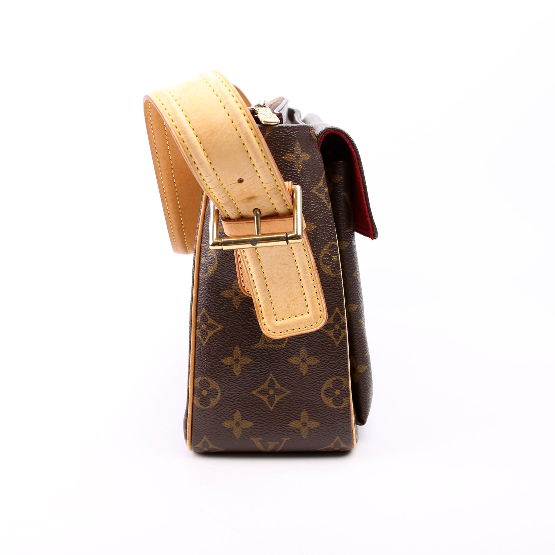 This pre-owned Louis Vuitton Viva Cite GM is guaranteed 100% authentic. The exterior is in the classic Louis Vuitton Monogram coated canvas.