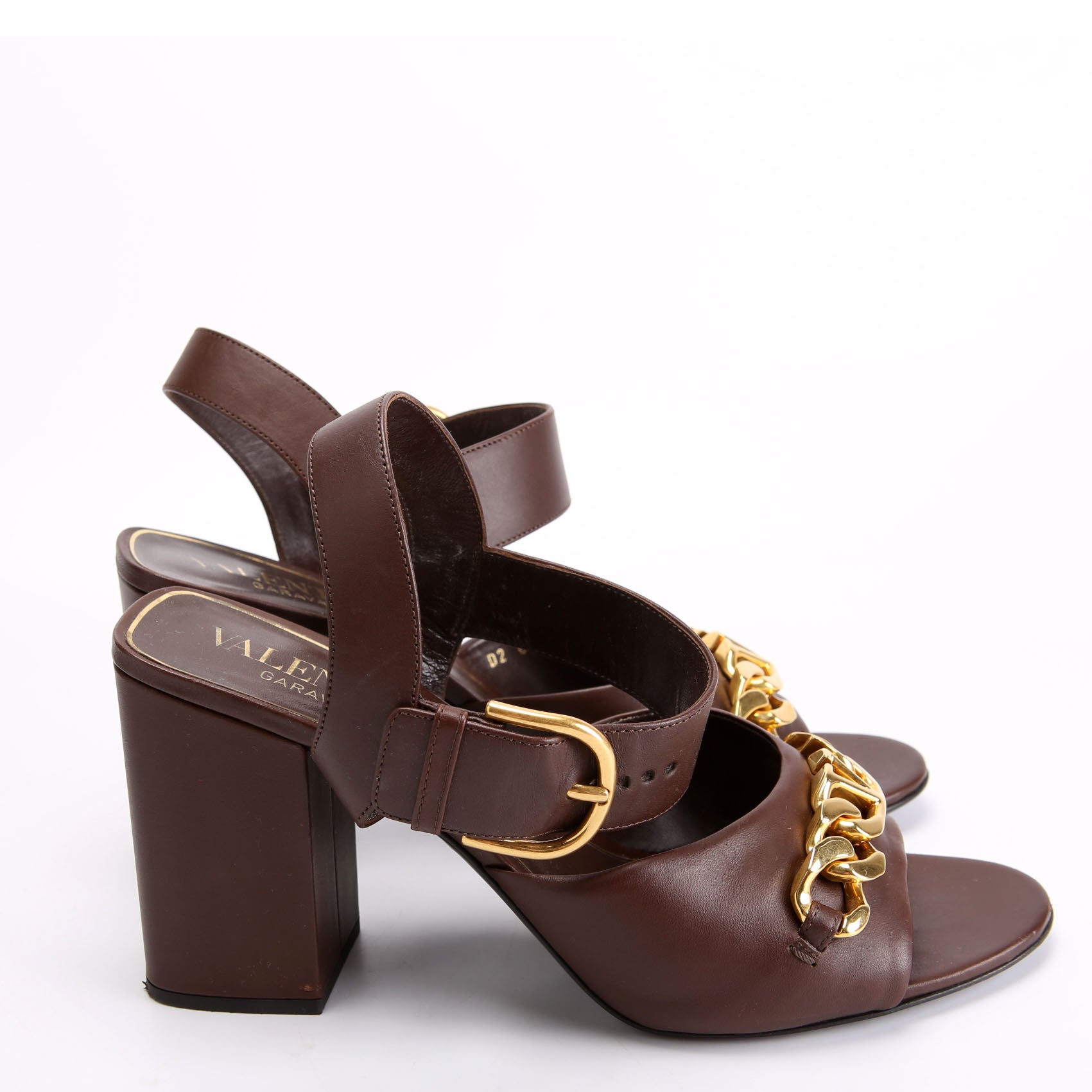 VLogo Chain Ankle Strap 85MM Sandals Size 40 Brown