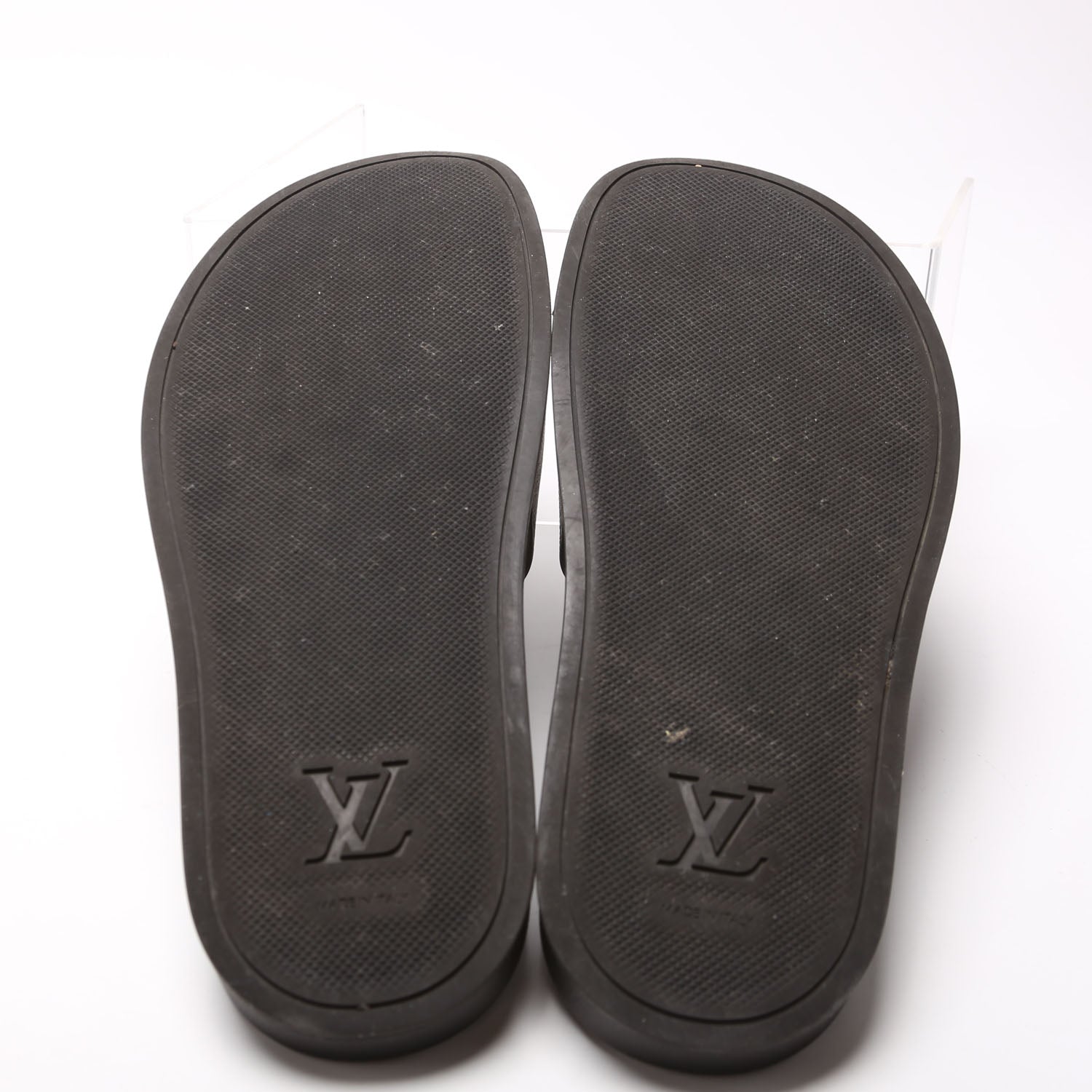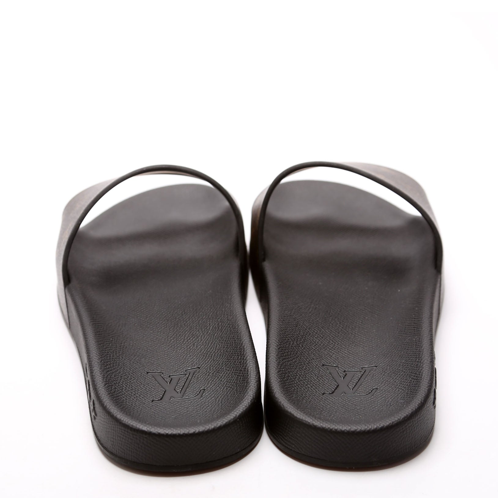 These pre-owned Louis Vuitton Waterfront Mule Monogram Slides are guaranteed 100% authentic.