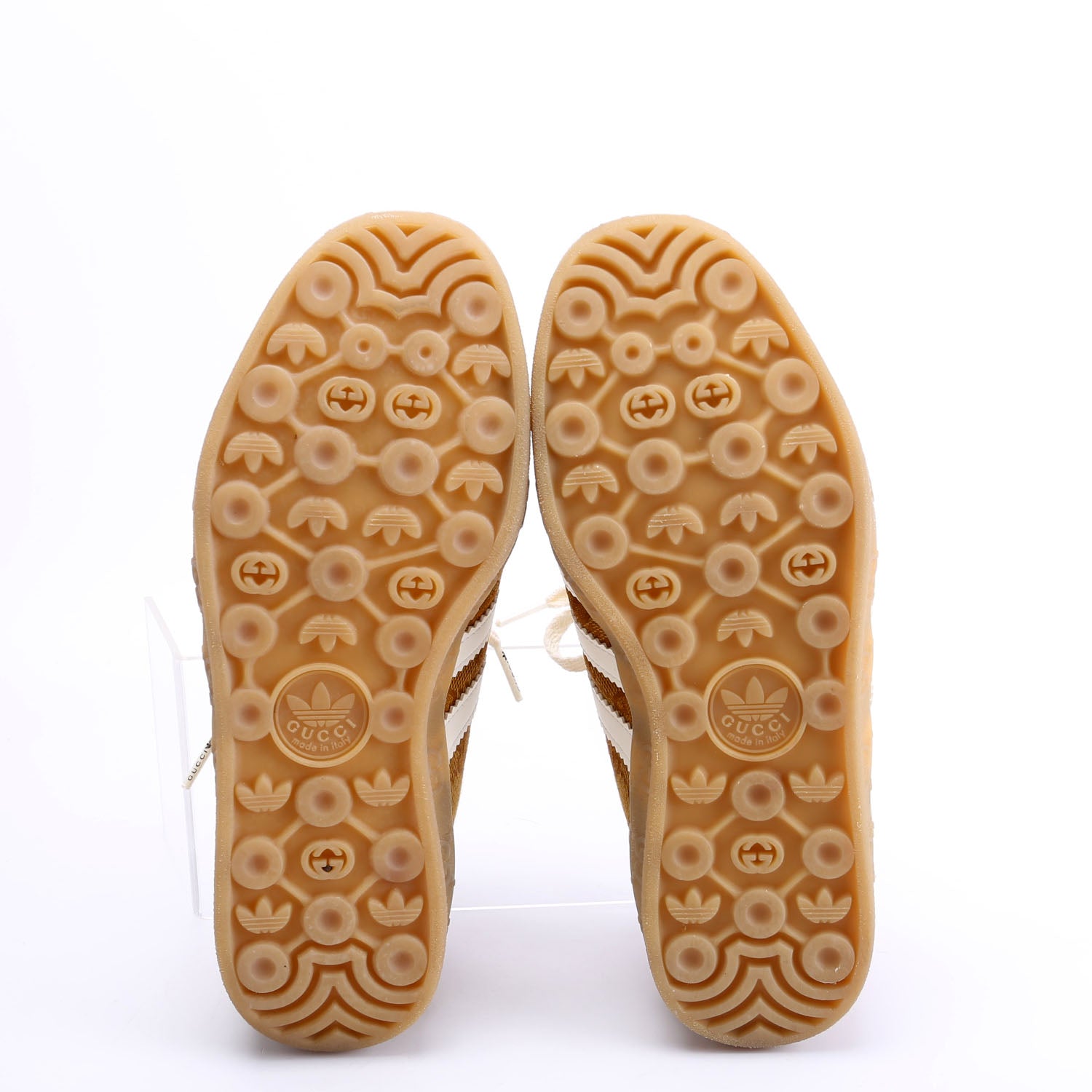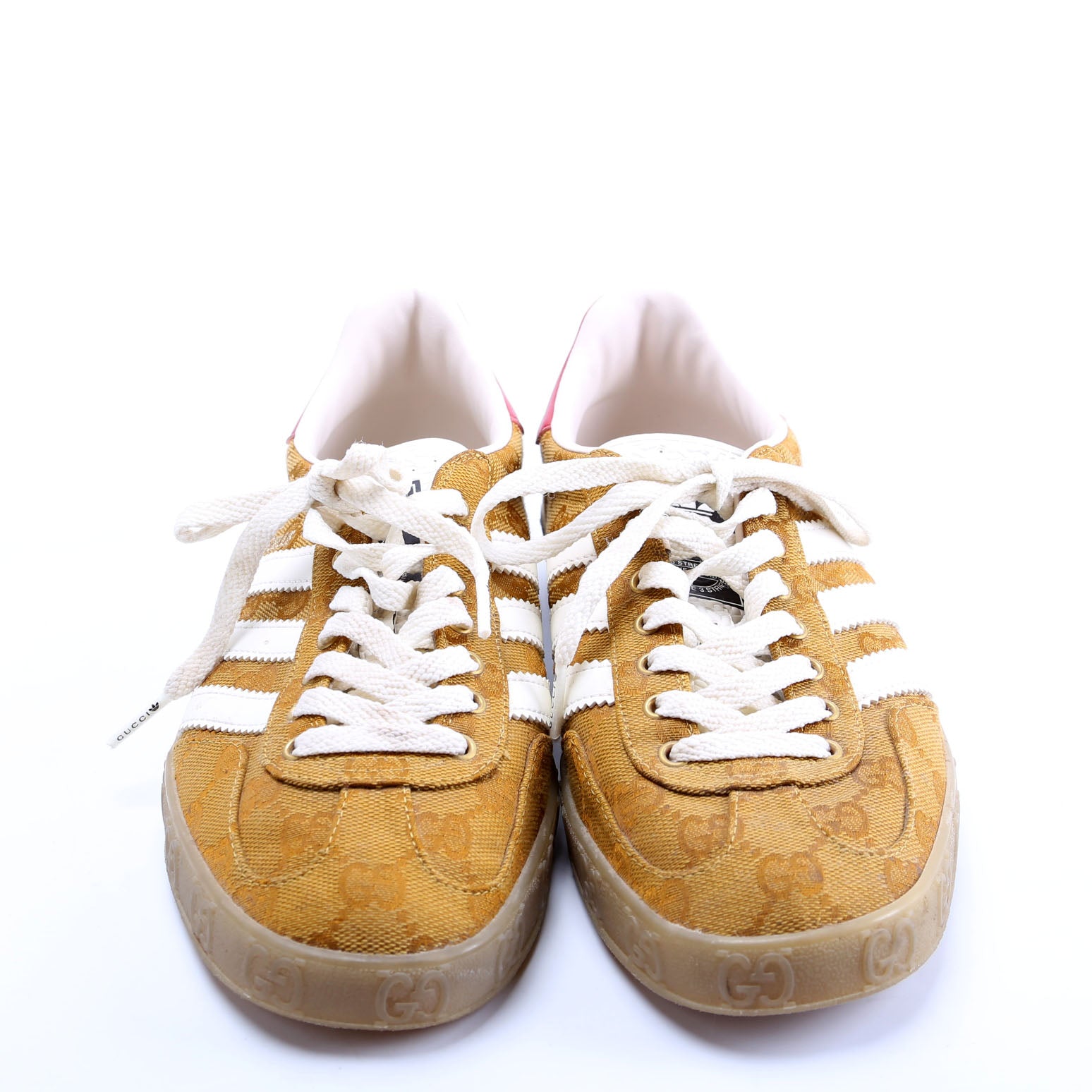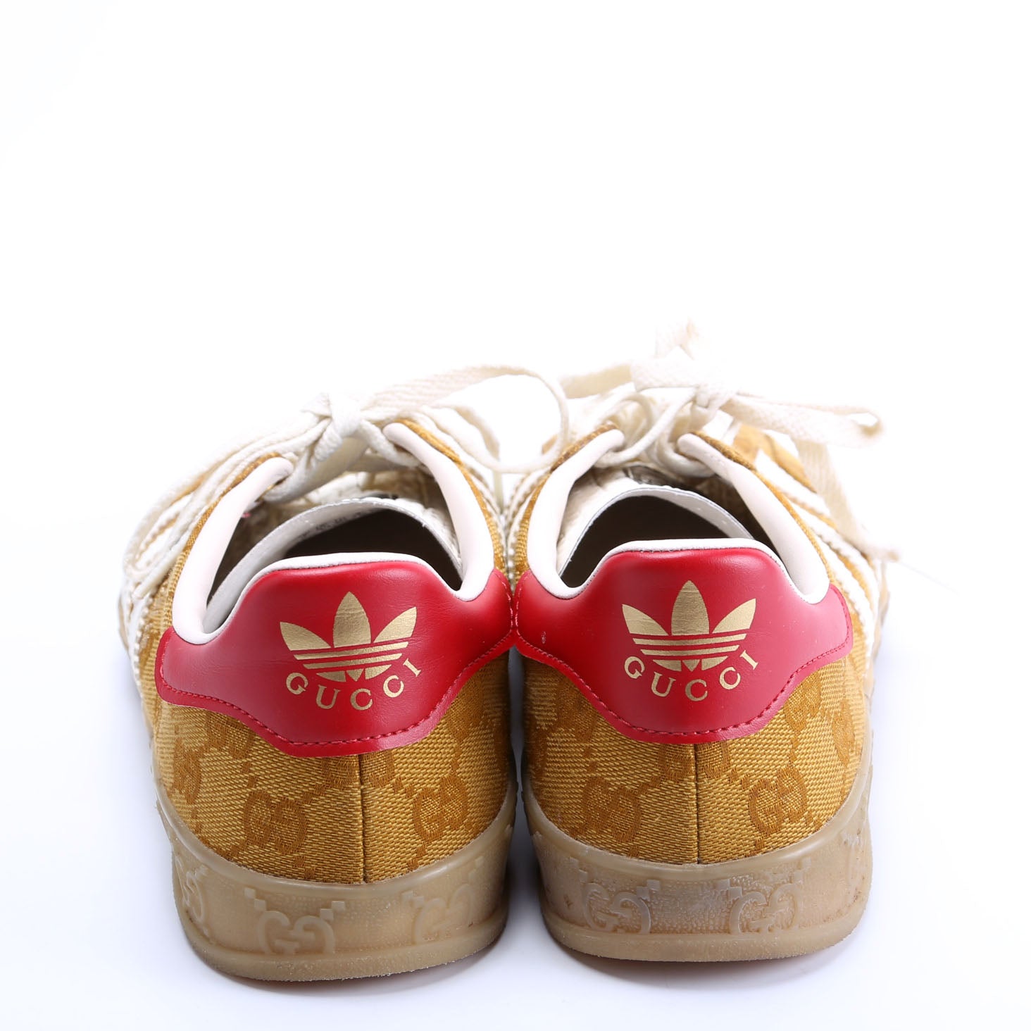These pre-owned Gucci X Adidas Gazelle GG Canvas Sneakers are guaranteed 100% authentic.
