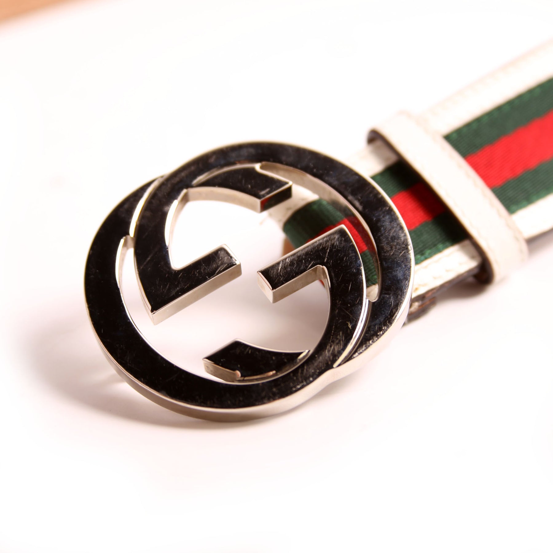 This pre-owned Gucci Web Canvas Interlocking G Belt is guaranteed 100% authentic.