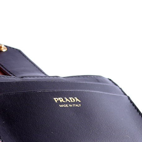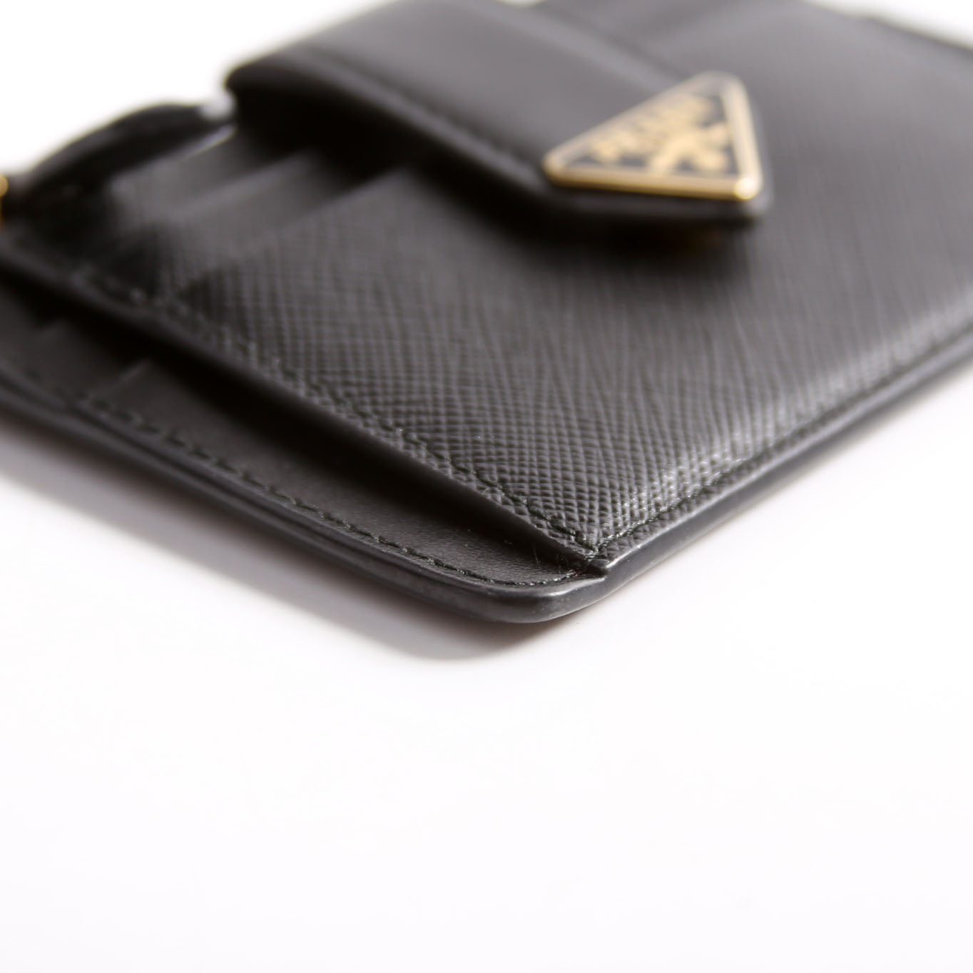 1MC038 Saffiano Triangle Logo Zip Card Case Black