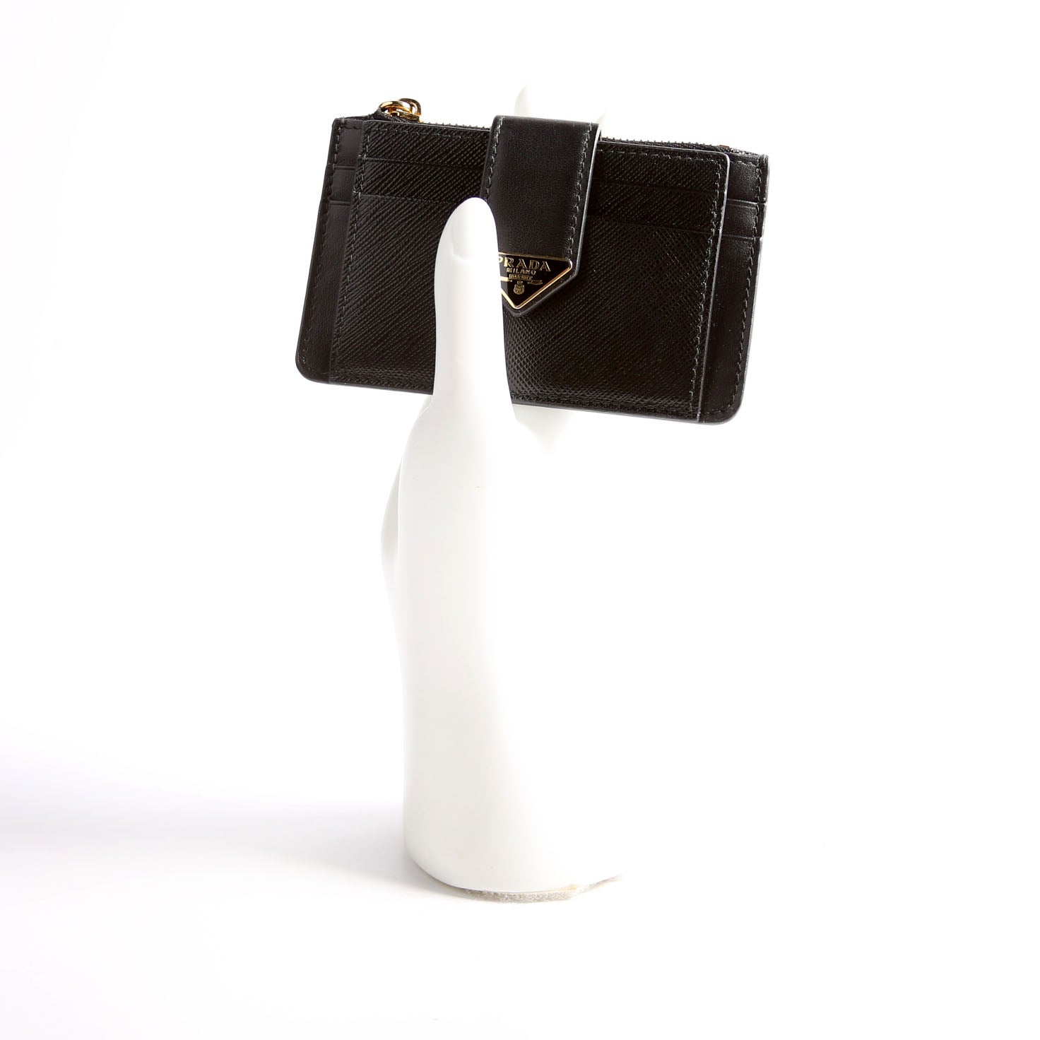 This pre-owned Prada Triangle Logo Zip Card Case is guaranteed 100% authentic. The exterior is in the classic Prada Saffiano leather.