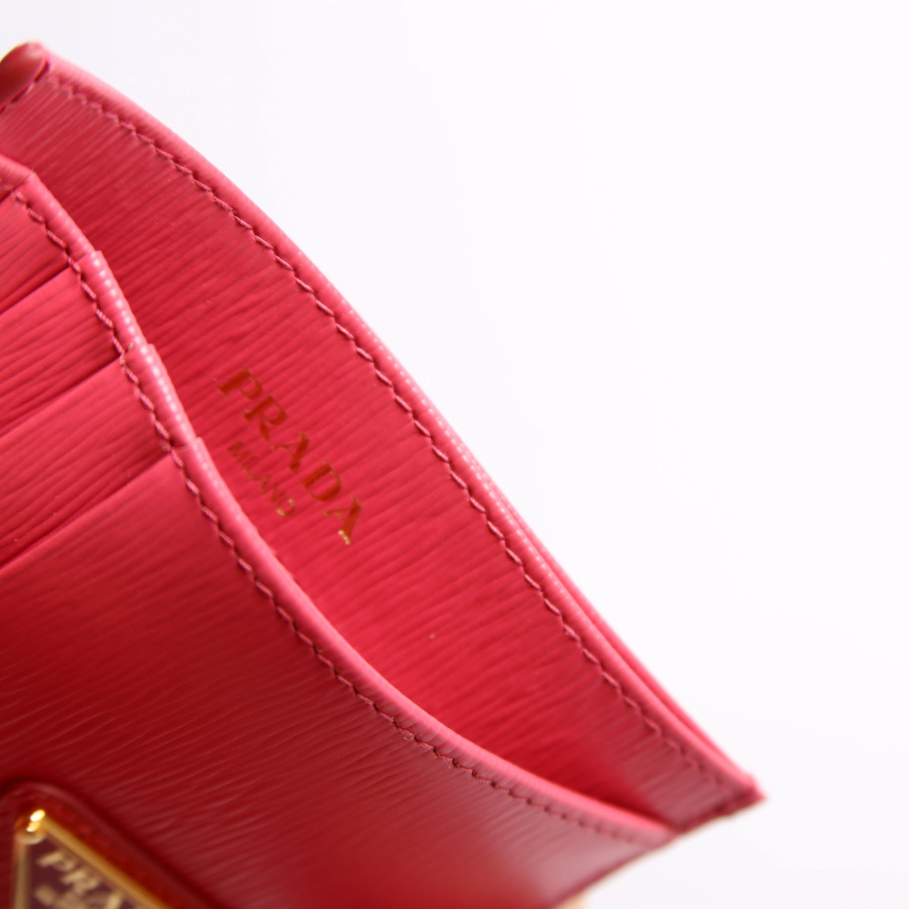 This pre-owned Prada Triangle Logo Card Holder is guaranteed 100% authentic. The exterior is in the classic Prada Saffiano Leather.