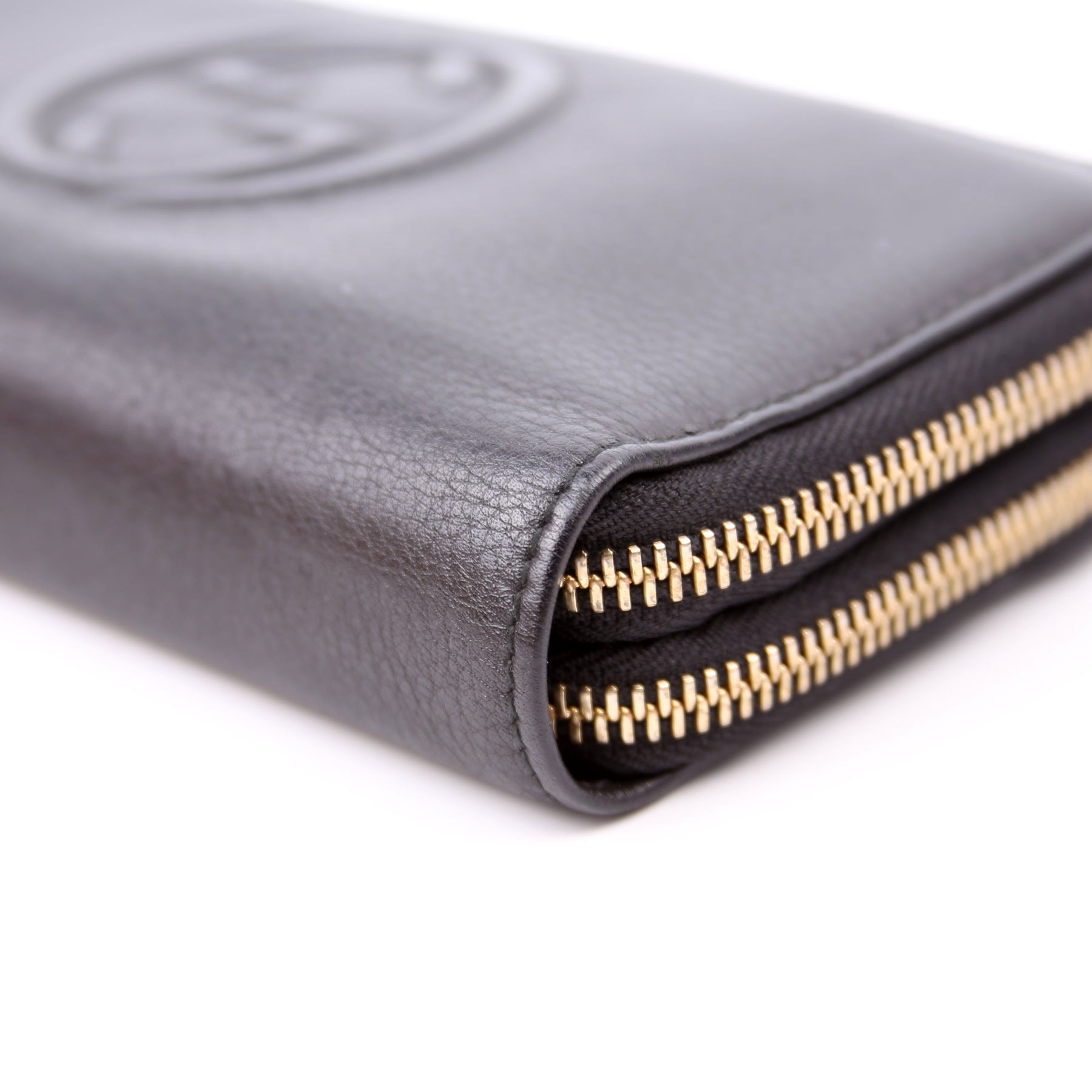 This pre-owned Gucci Soho Double Zip Wallet is guaranteed 100% authentic. The exterior is in the classic Gucci Soho leather.