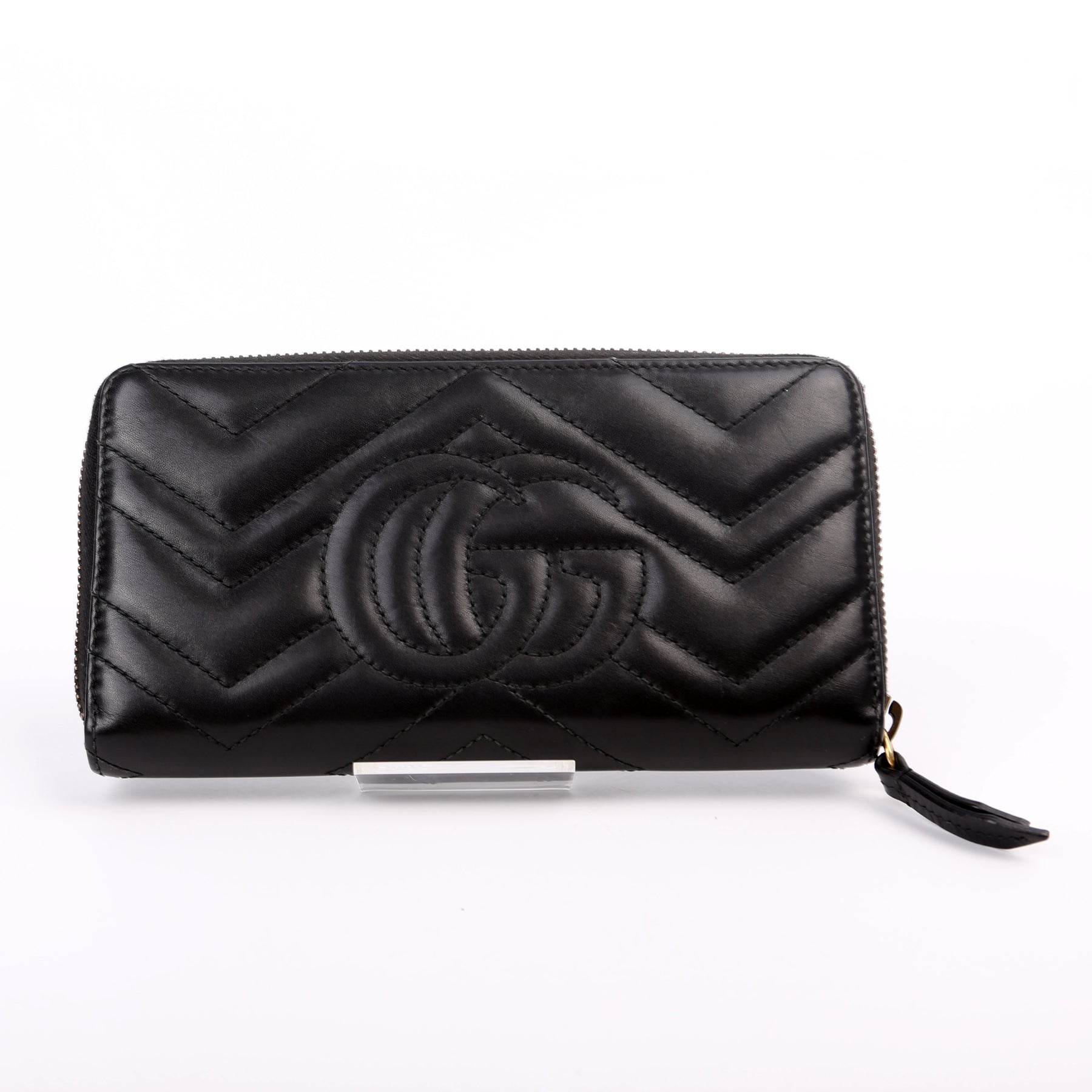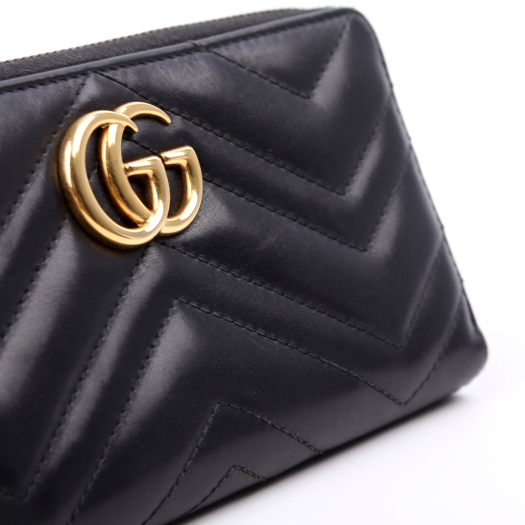 This pre-owned Gucci GG Marmont Zip Around Wallet is guaranteed 100% authentic. The exterior is in the classic Gucci Marmont leather.
