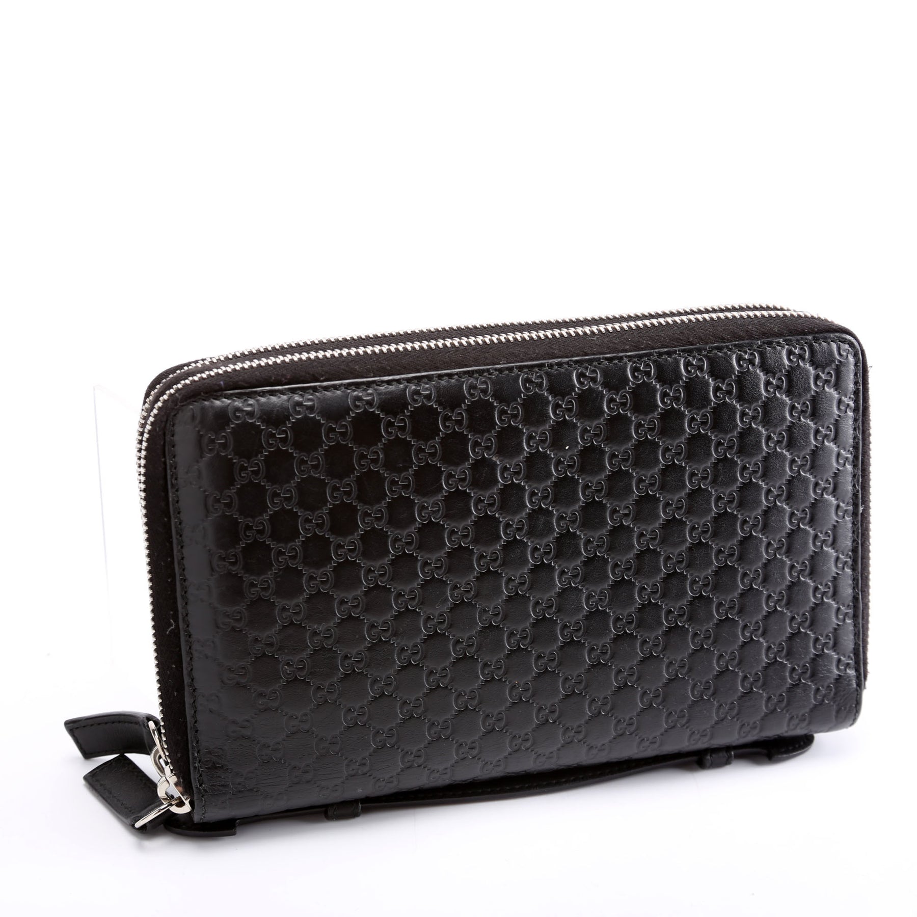 This pre-owned Gucci Micro Guccissima Travel Wallet is guaranteed 100% authentic. The exterior is in the classic Gucci Guccissima leather.