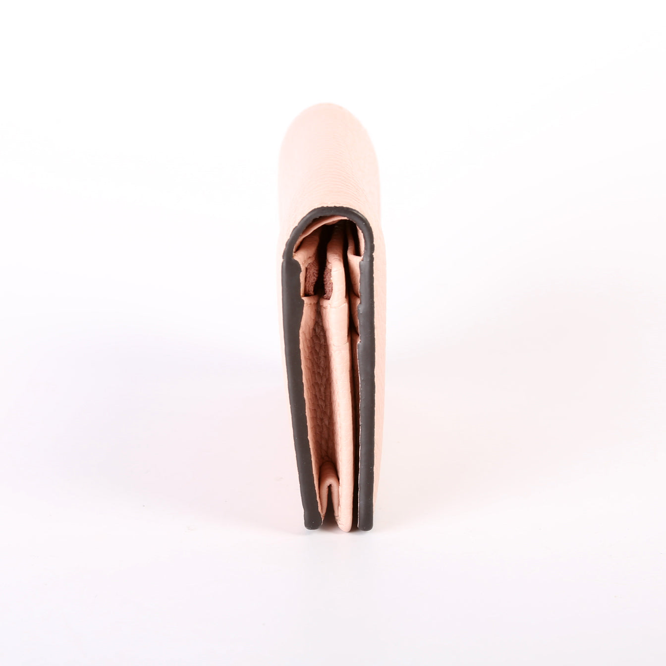 Interior: The interior is clean and features six card slots, one bill slot, and one zip closure coin pouch. The leather has minor wrinkling throughout.