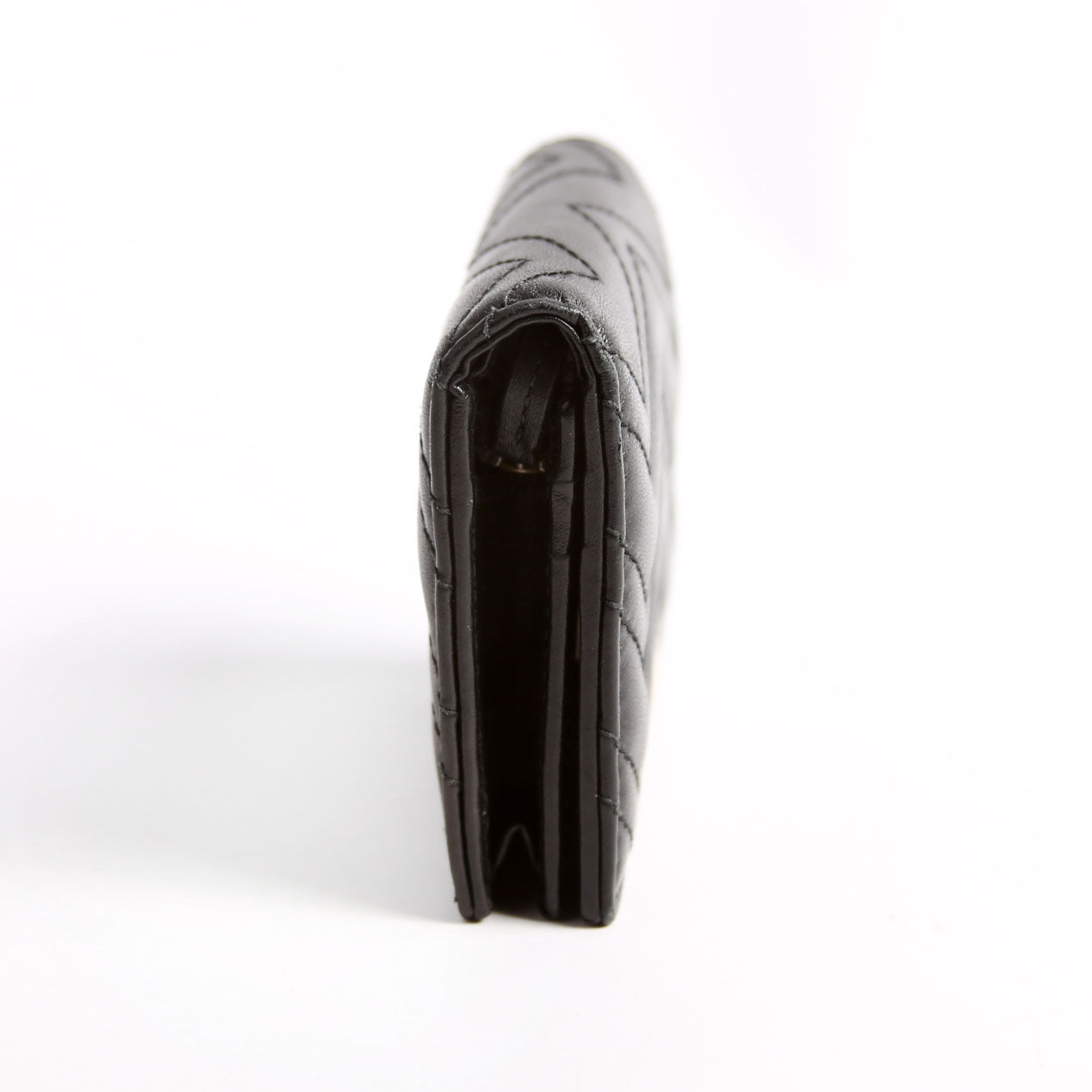 Interior: The interior is clean and free of rips or tears. It features five card slots, one bill slot and one zip closure coin pouch.