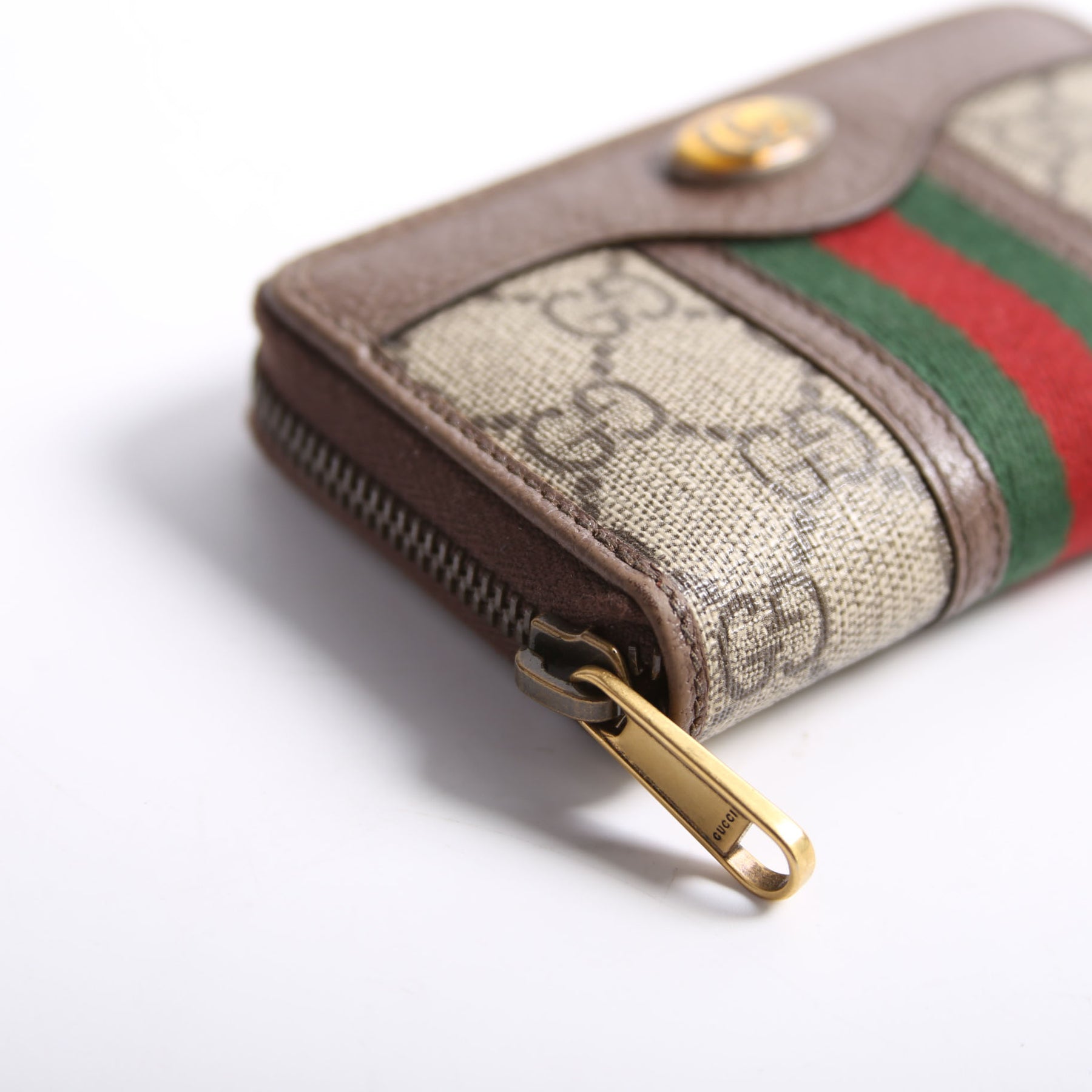 This pre-owned Gucci GG Supreme Zip Around Card Case is guaranteed 100% authentic.
