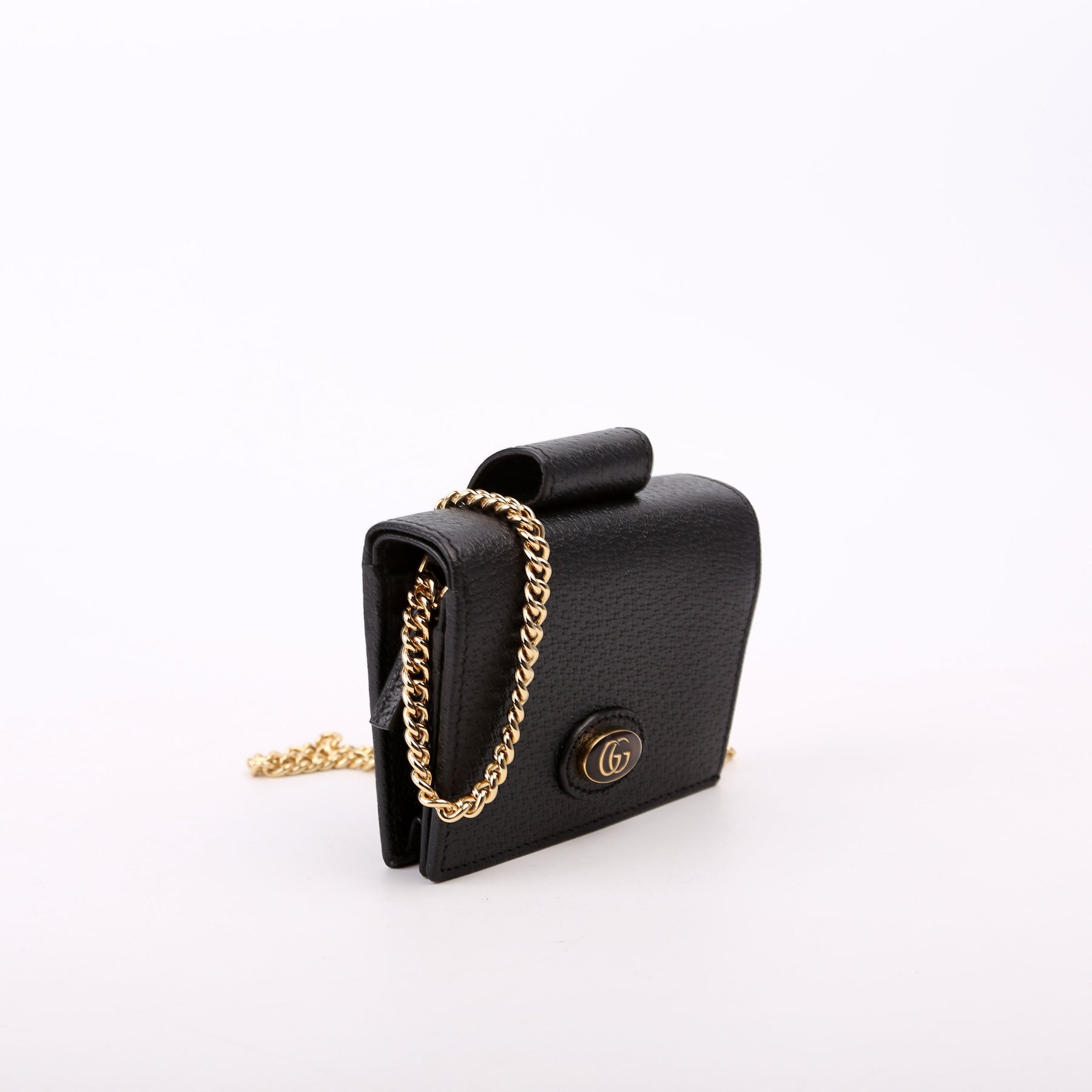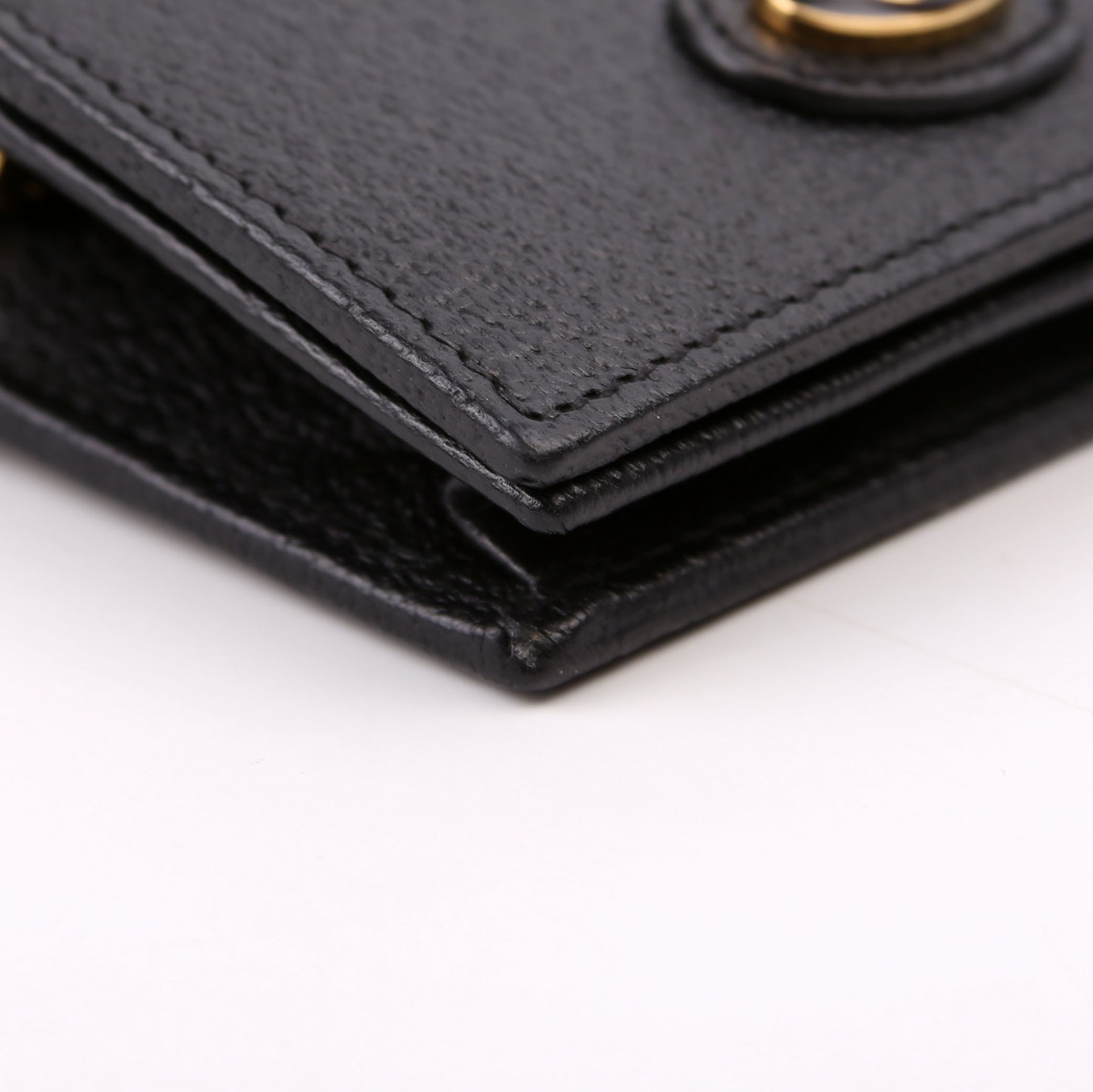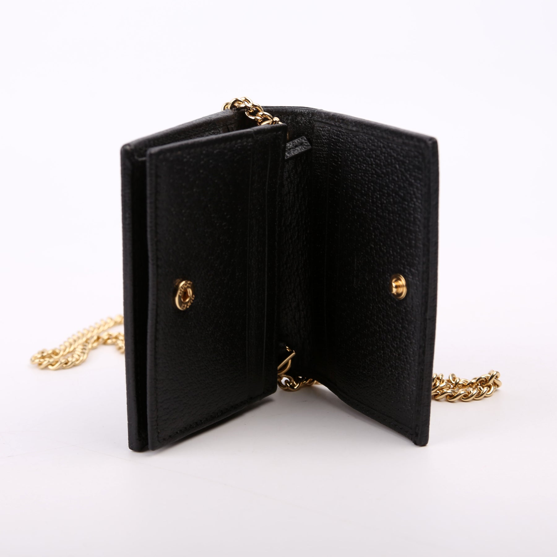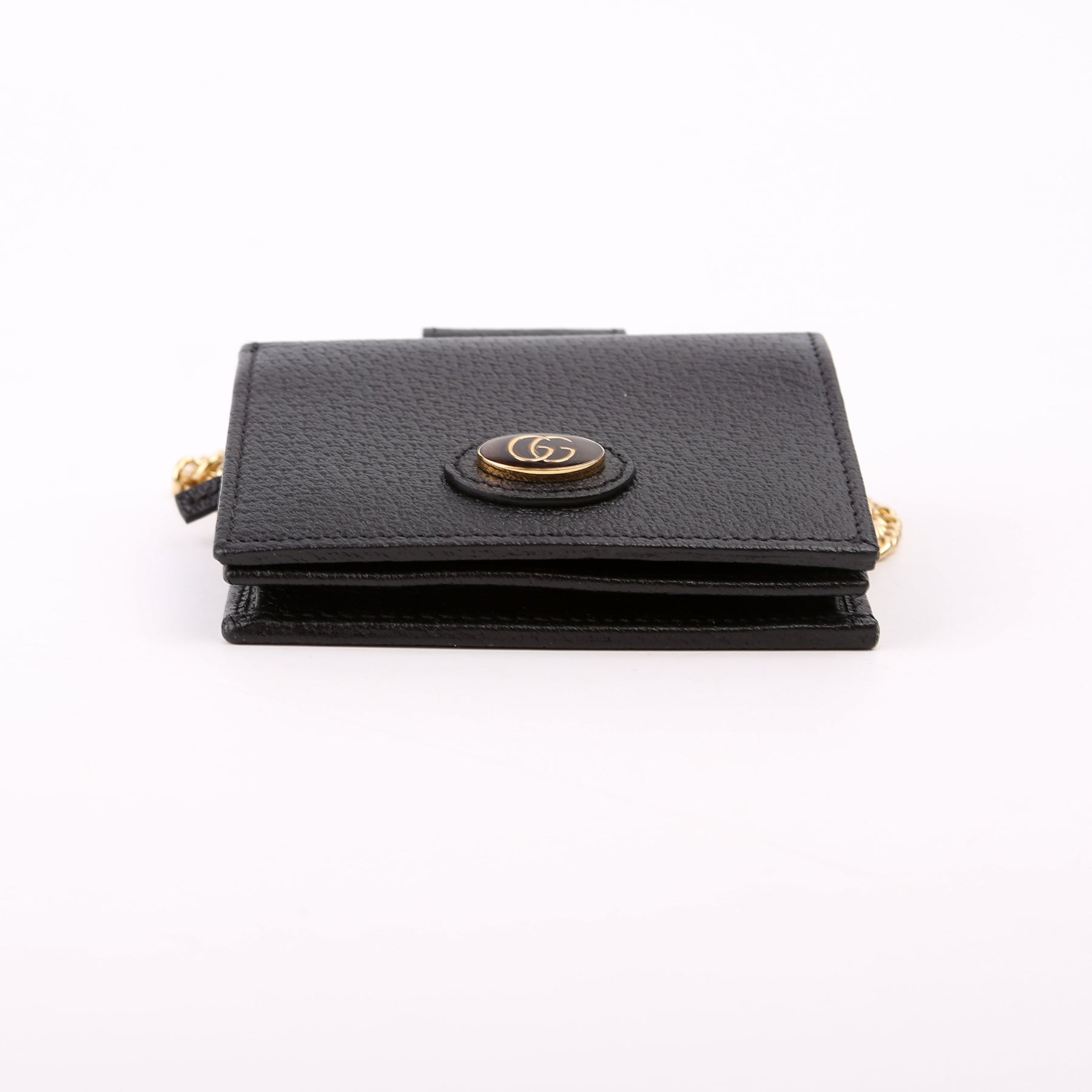 617195 GG Enamel Calfskin Lipstick Card Holder Chain Wallet Black
