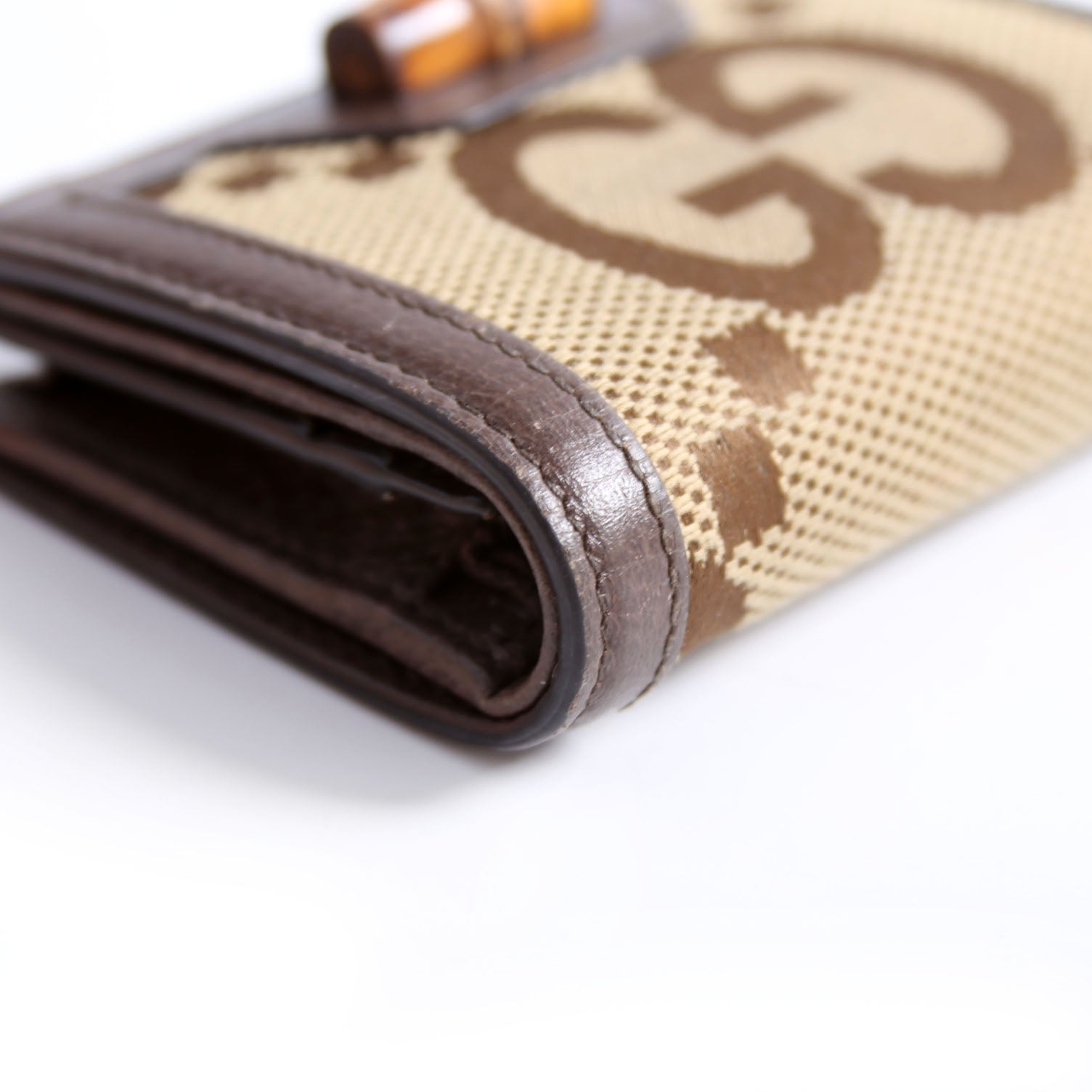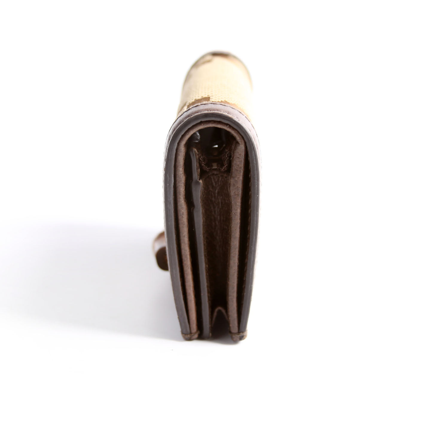 Interior: The interior shows minor wear. It features six card slots, one zip coin pocket, and one bill slot.