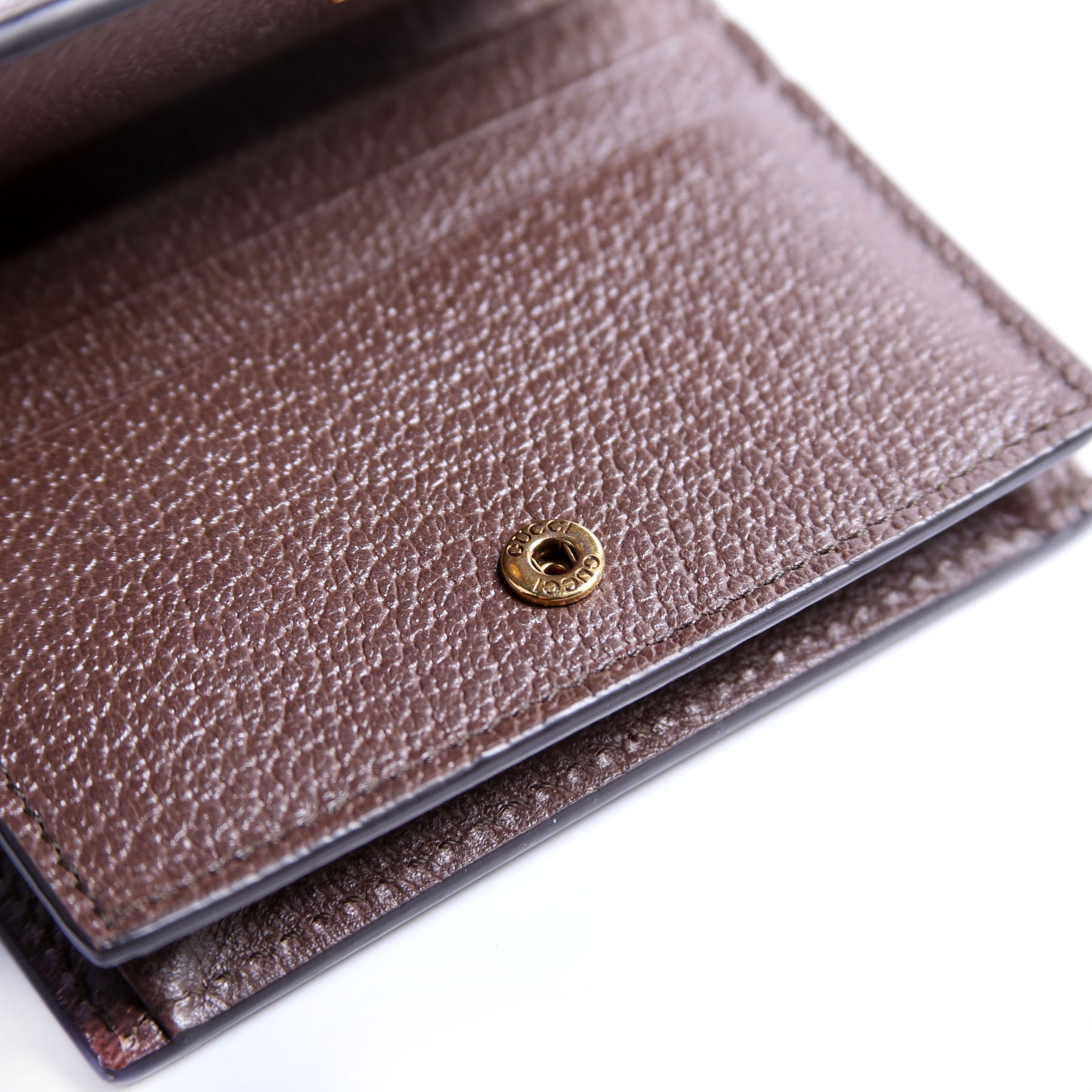 Interior: The interior is clean and free of rips or tears. It features six card slots, one zip coin pocket, and one bill slot.