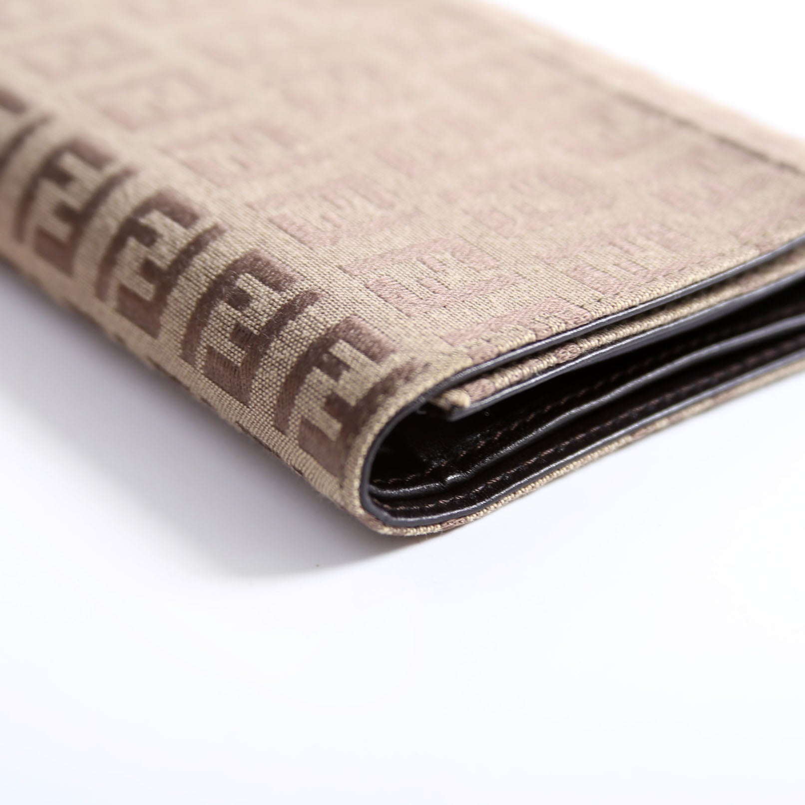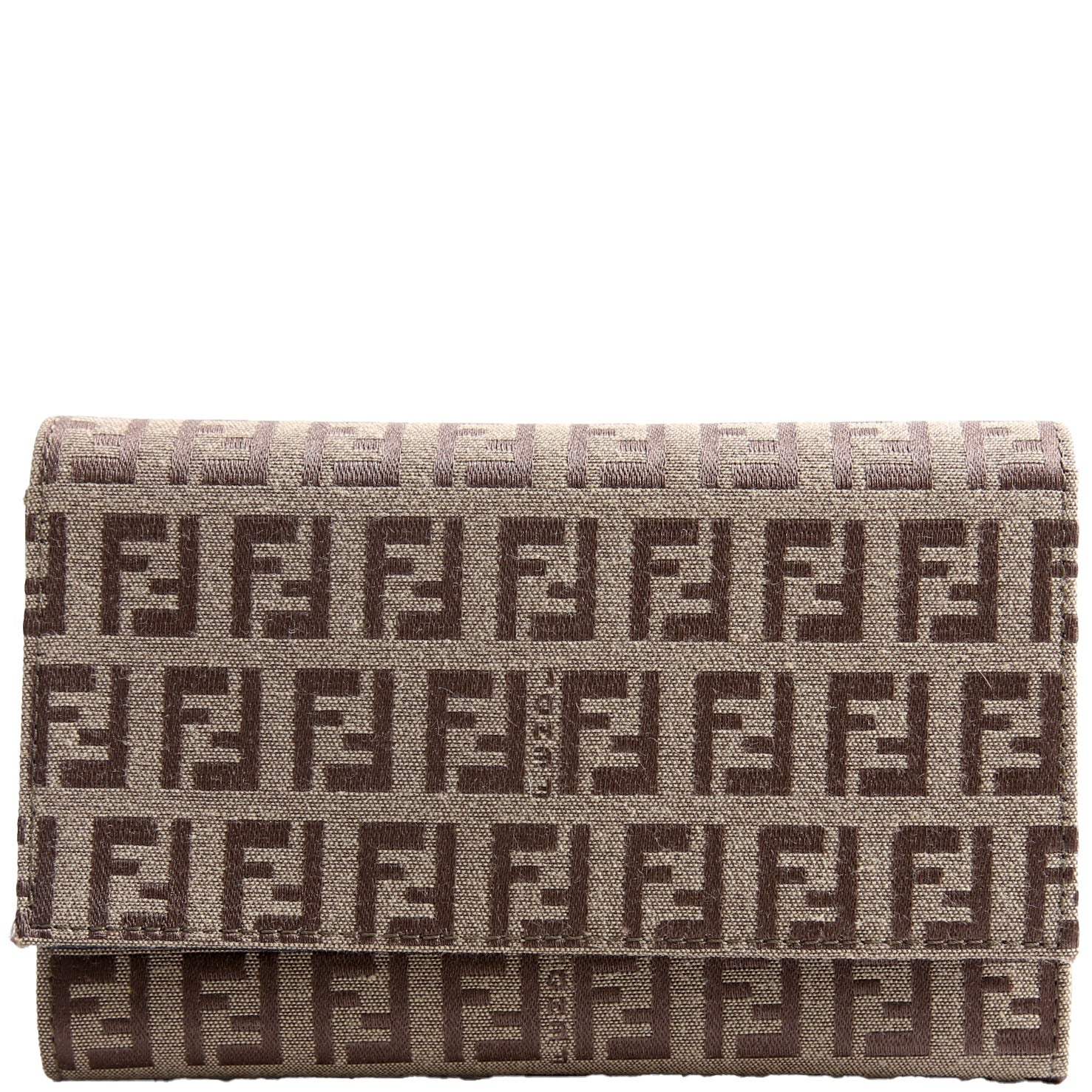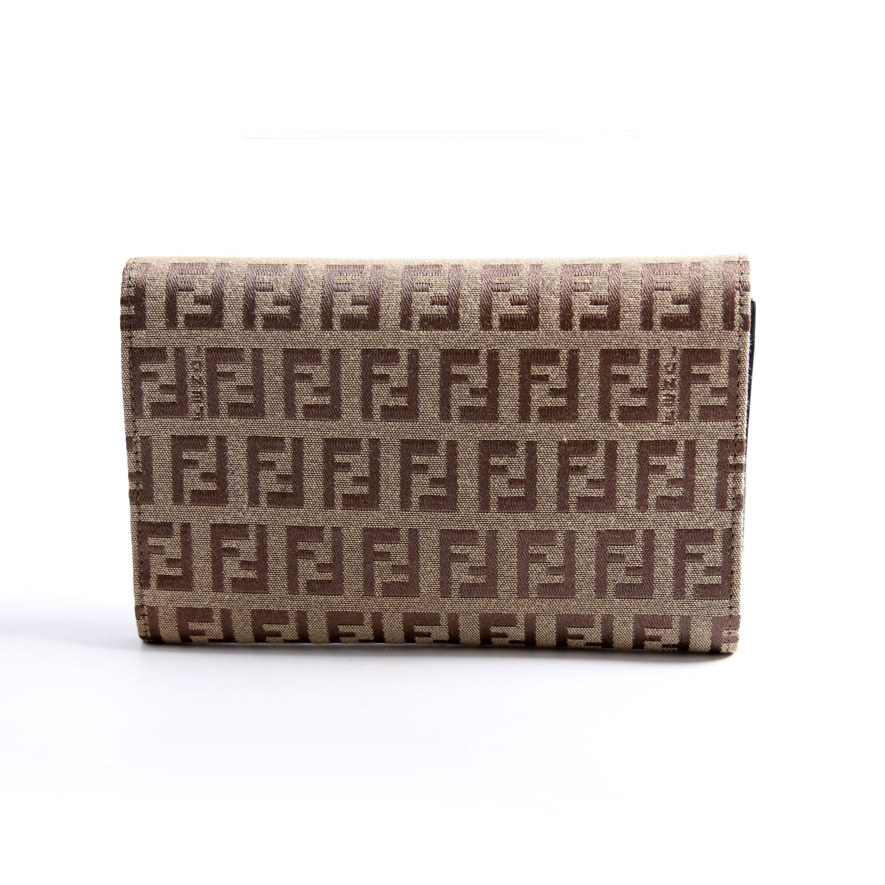 This pre-owned Fendi Zucchino Compact Trifold Wallet is guaranteed 100% authentic.