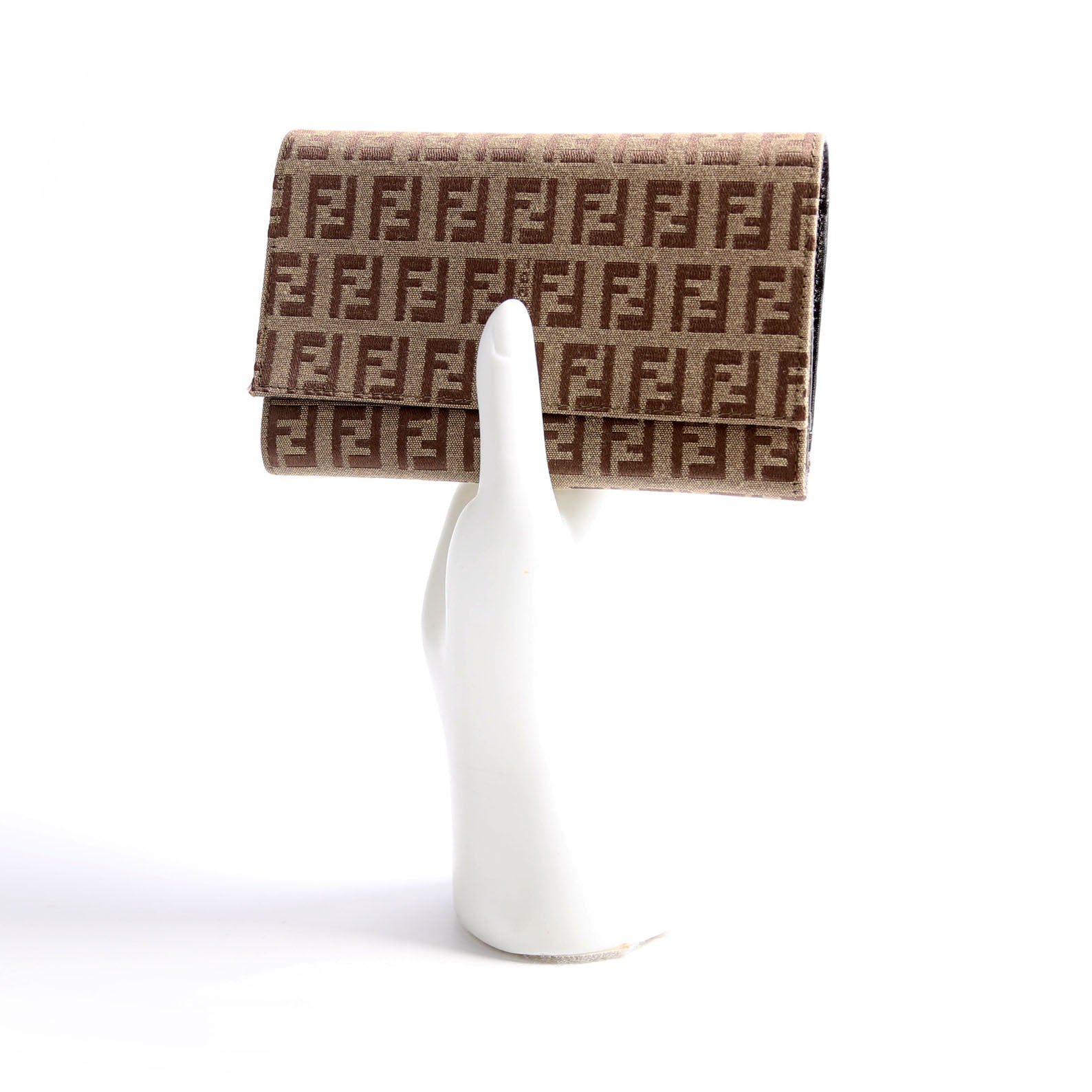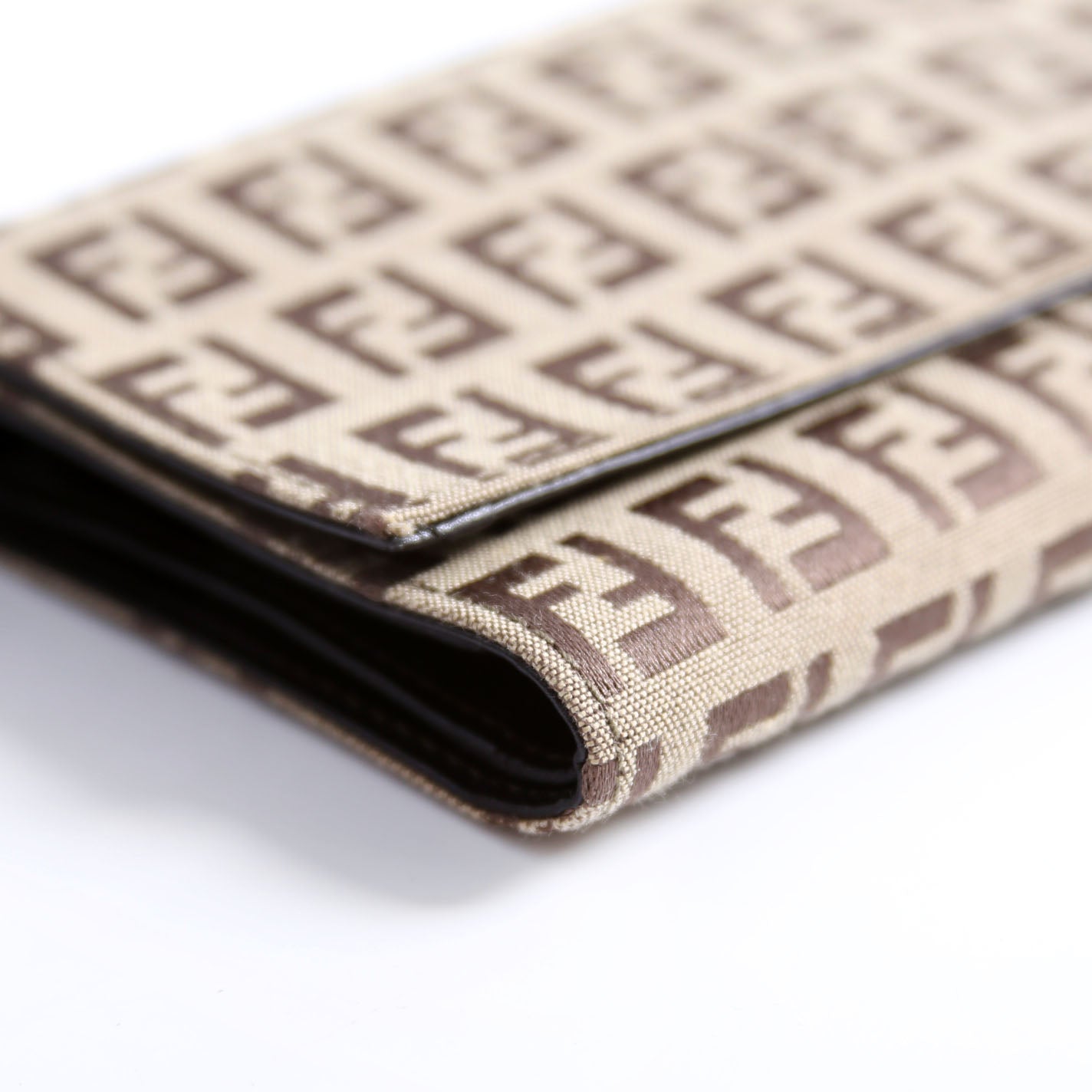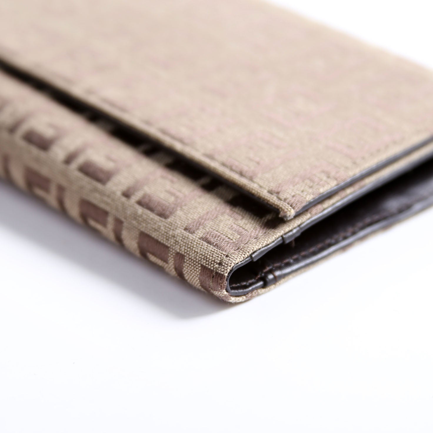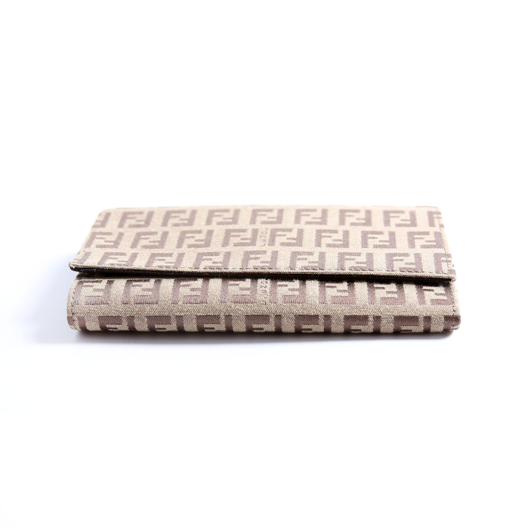This pre-owned Fendi Zucchino Compact Trifold Wallet is guaranteed 100% authentic.