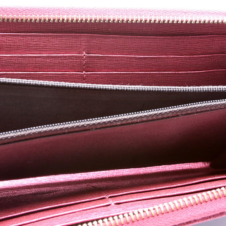 Interior: The interior shows minor signs of wear. The interior features four bill slots, eight card slots, and one zip closure coin pouch.