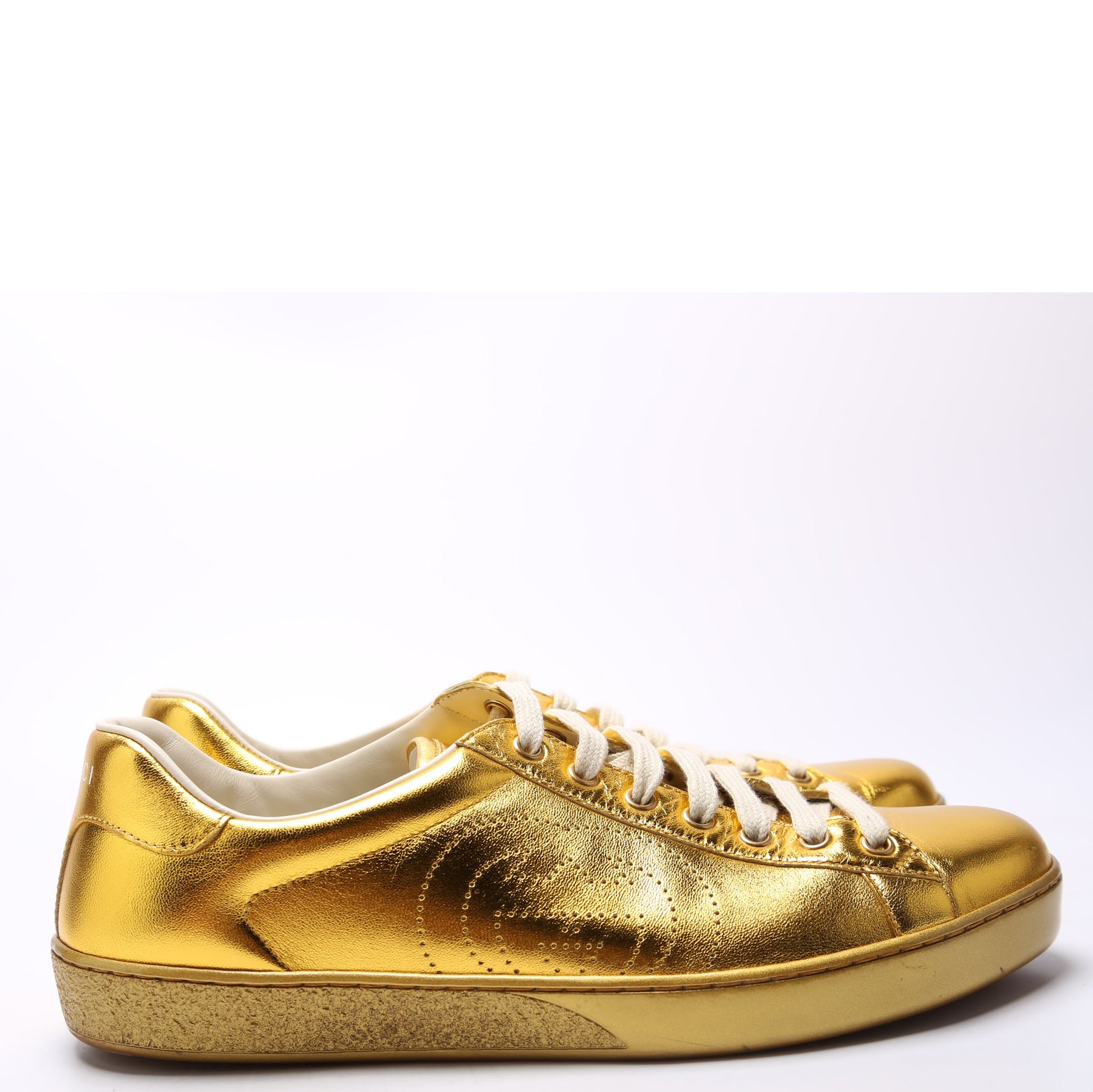 Ace Interlocking G Metallic Leather Sneakers Size 8.5 Gold