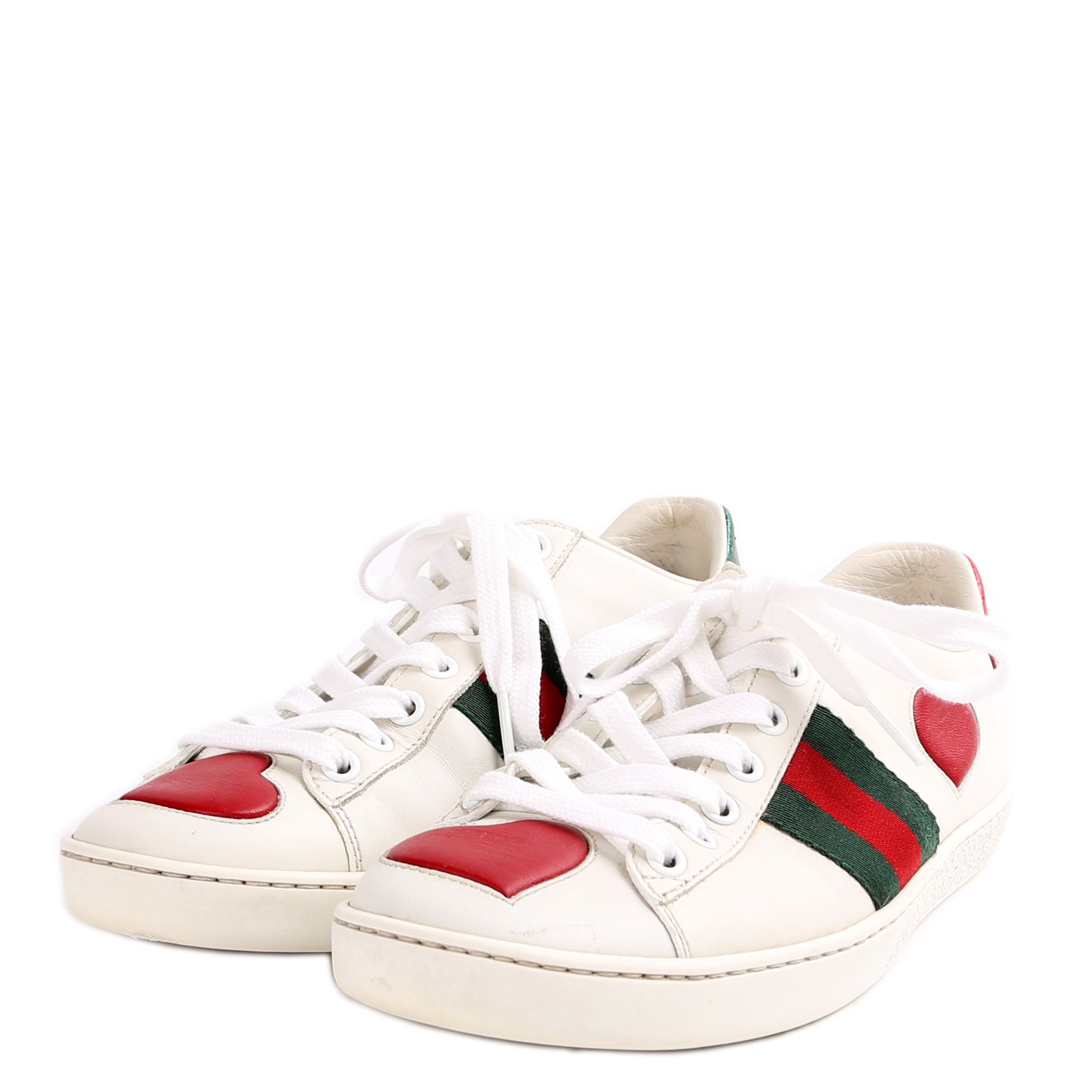 These pre-owned Gucci Ace Web Heart Sneakers are guaranteed 100% authentic.