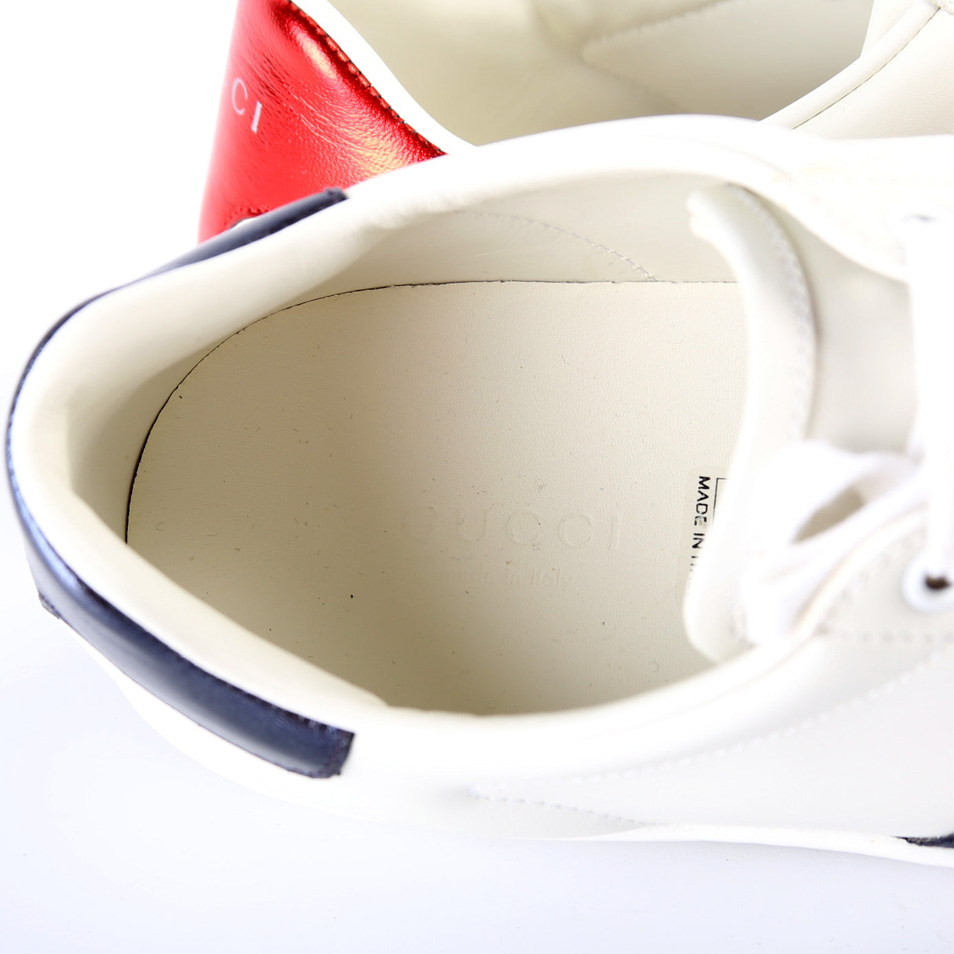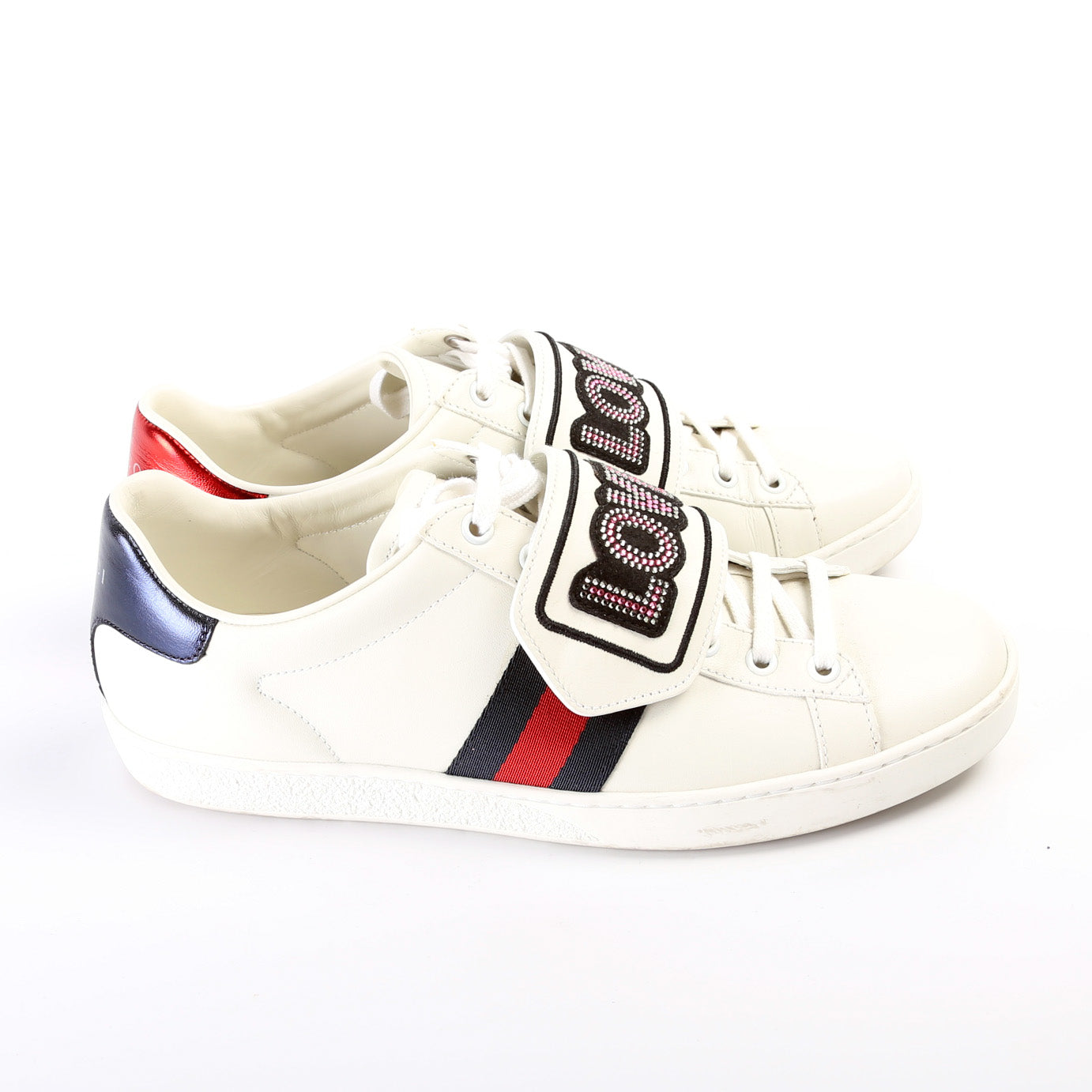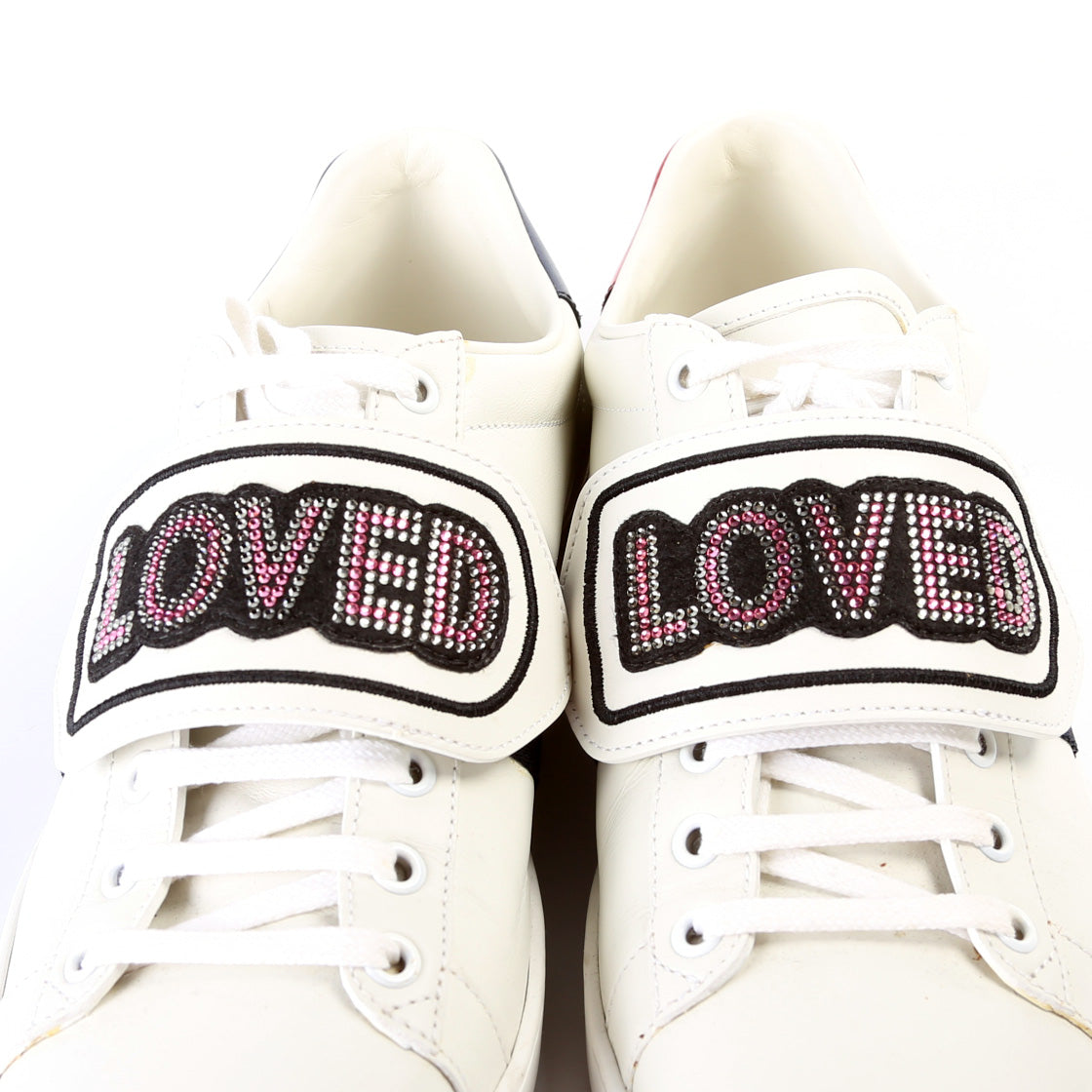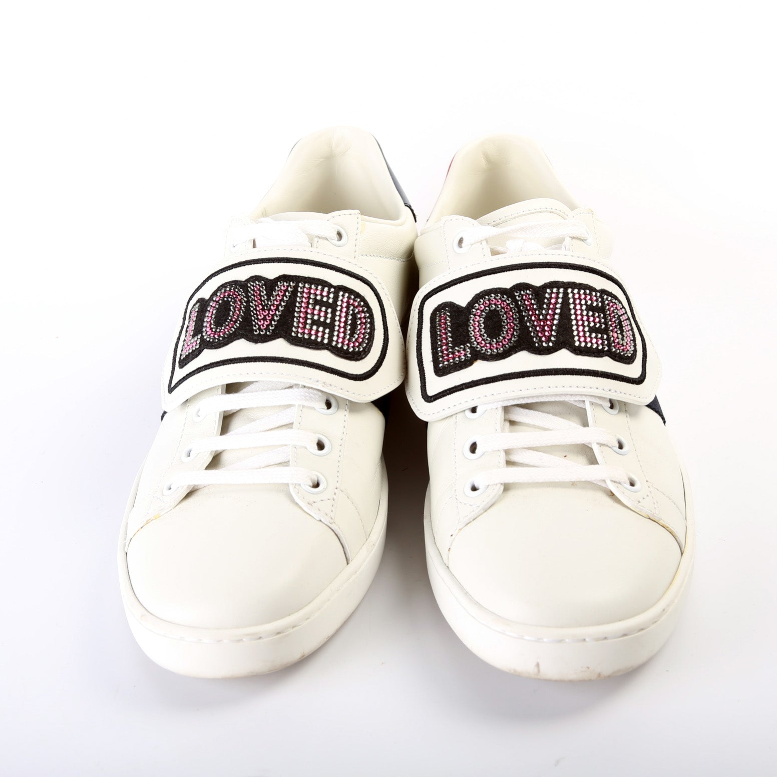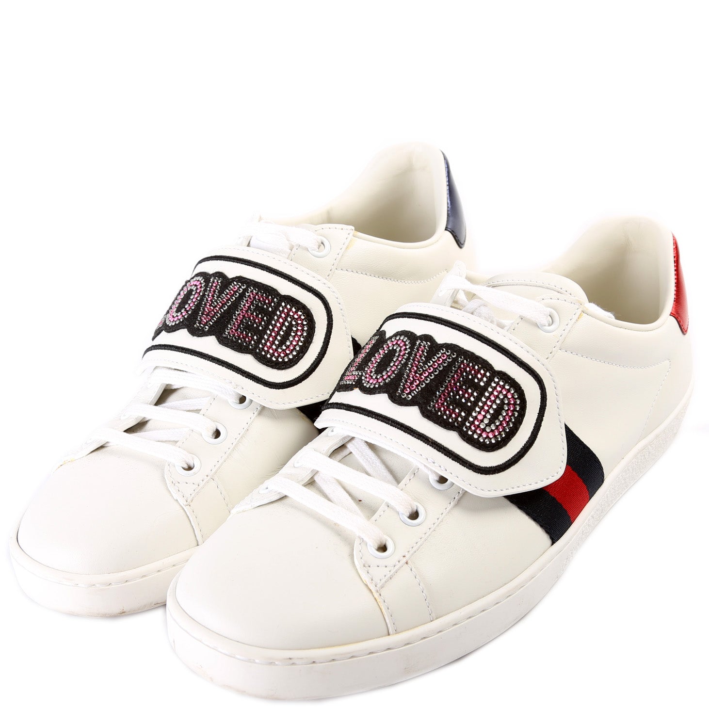 These pre-owned Gucci Ace Web Loved Embellished Velcro Leather Sneakers are guaranteed 100% authentic.