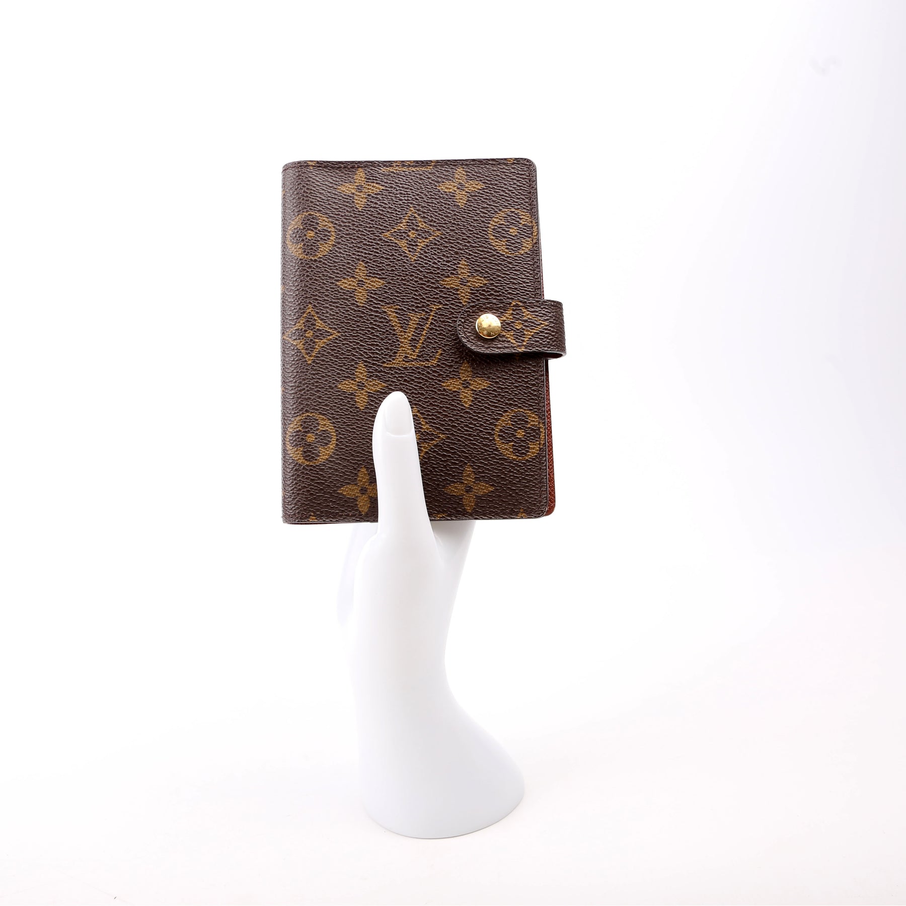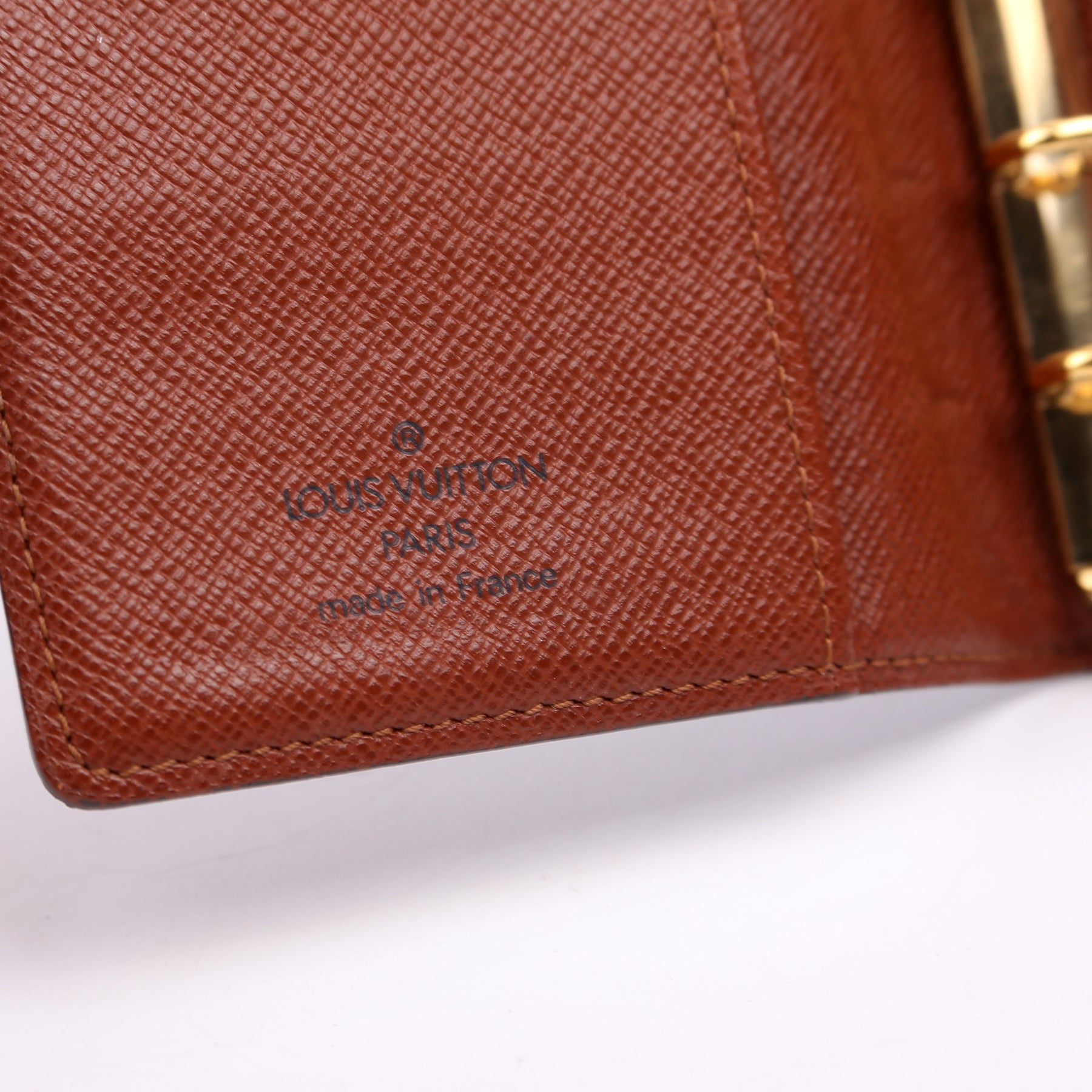 This pre-owned Louis Vuitton Agenda Small Ring is guaranteed 100% authentic. The exterior is in the classic Monogram coated canvas.