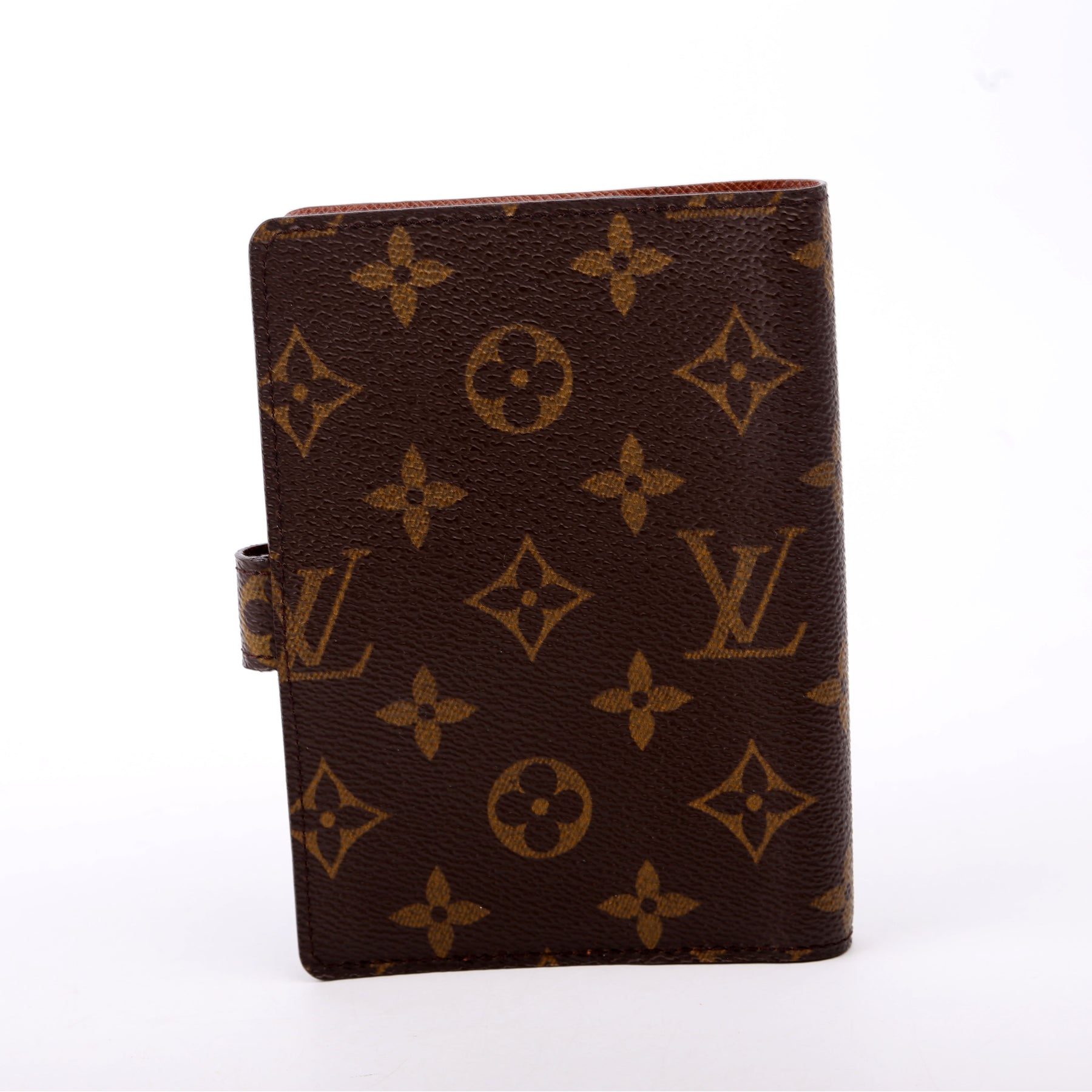 This pre-owned Louis Vuitton Agenda Small Ring is guaranteed 100% authentic. The exterior is in the classic Monogram coated canvas.
