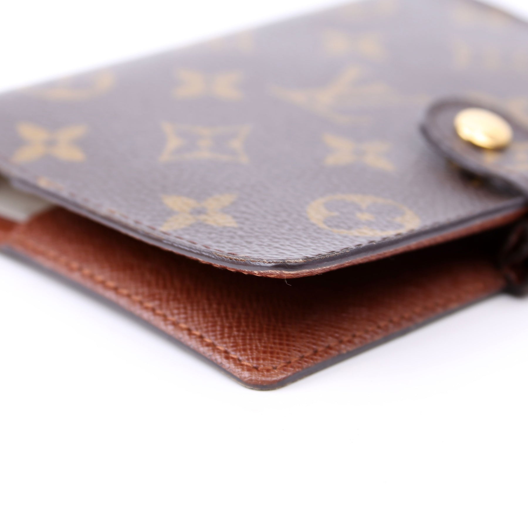 This pre-owned Louis Vuitton Agenda Small Ring is guaranteed 100% authentic. The exterior is in the classic Louis Vuitton Monogram coated canvas.