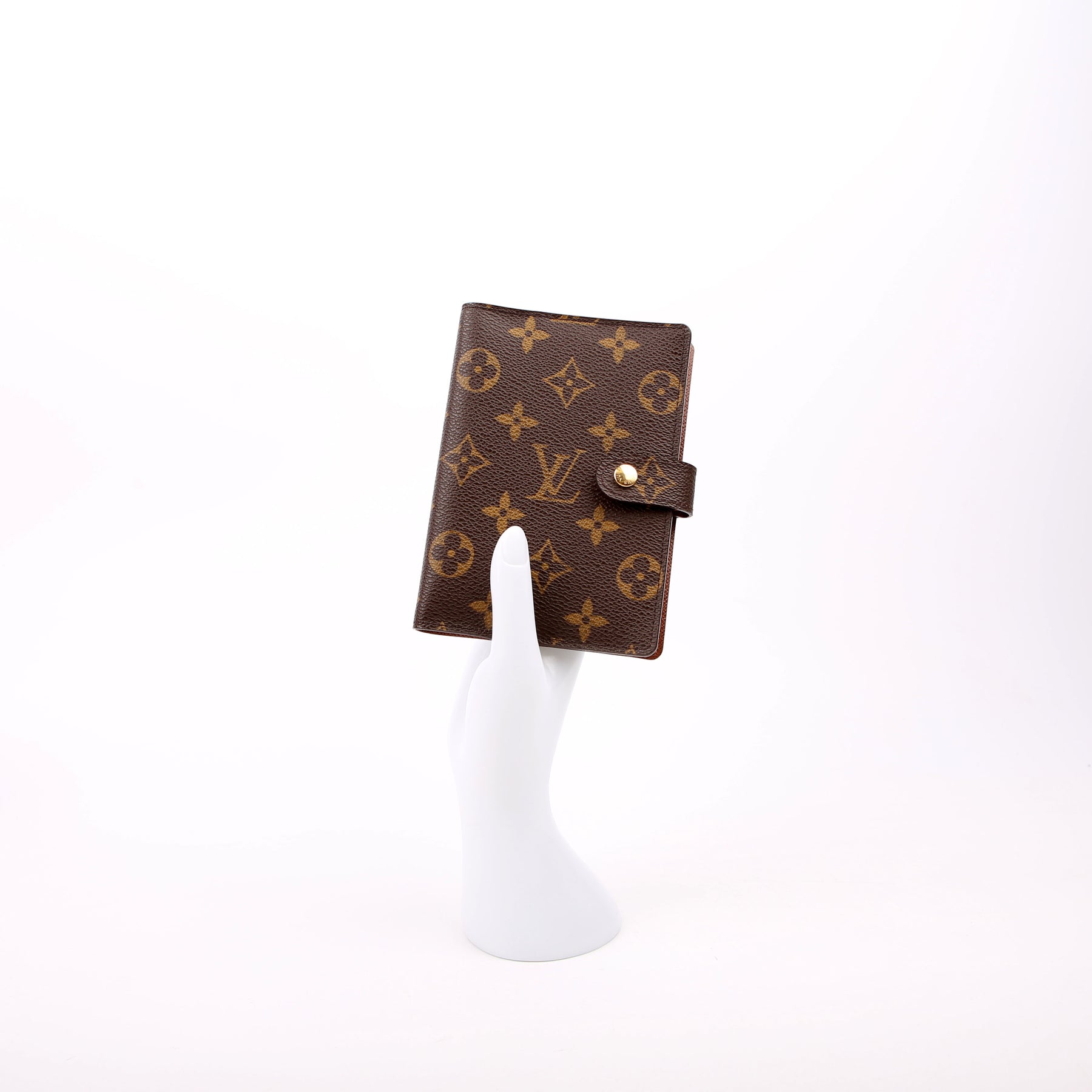 This pre-owned Louis Vuitton Agenda Small Ring is guaranteed 100% authentic. The exterior is in the classic Louis Vuitton Monogram coated canvas.