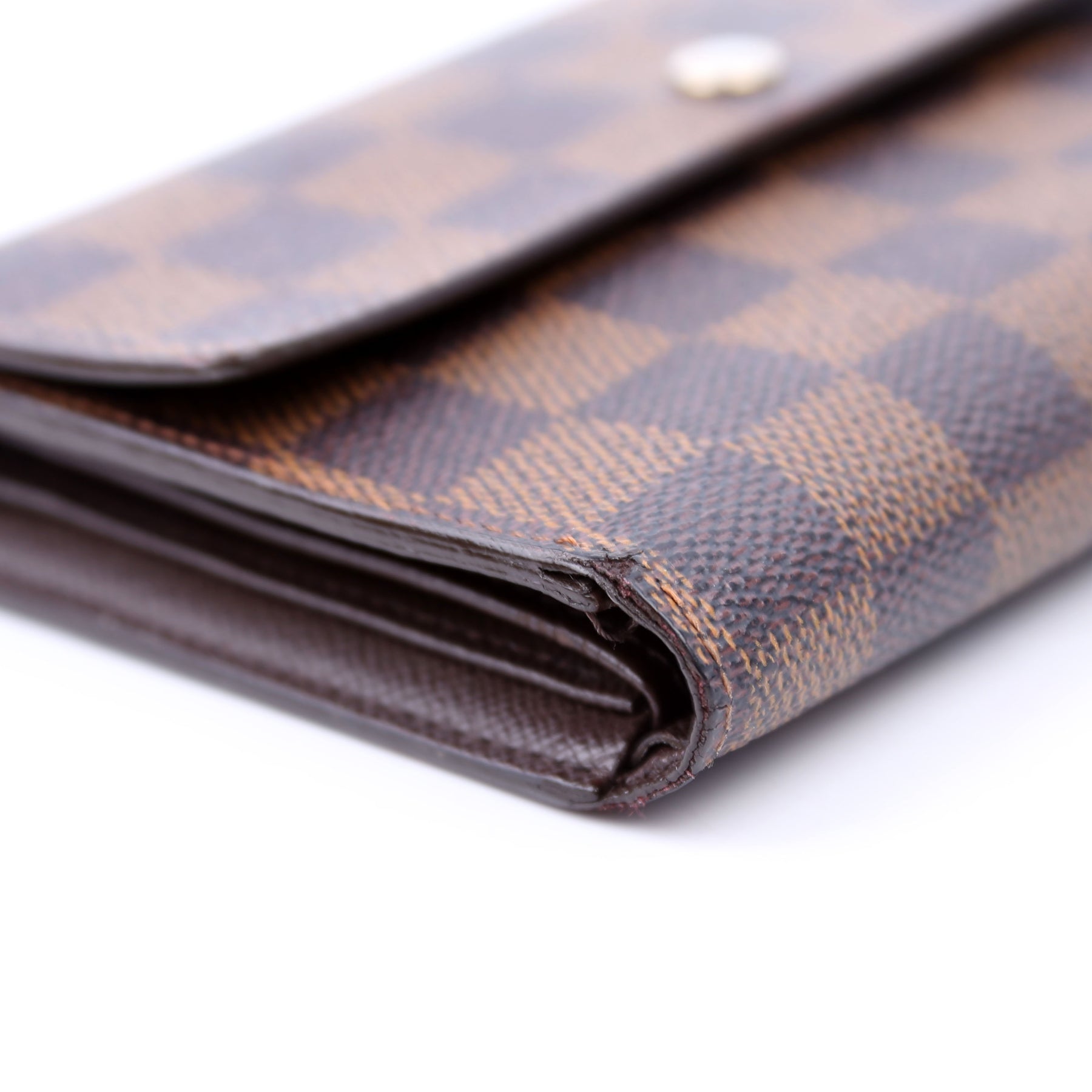This pre-owned Louis Vuitton Alexandra Wallet is guaranteed 100% authentic. The exterior is in the classic Louis Vuitton Damier Ebene coated canvas.