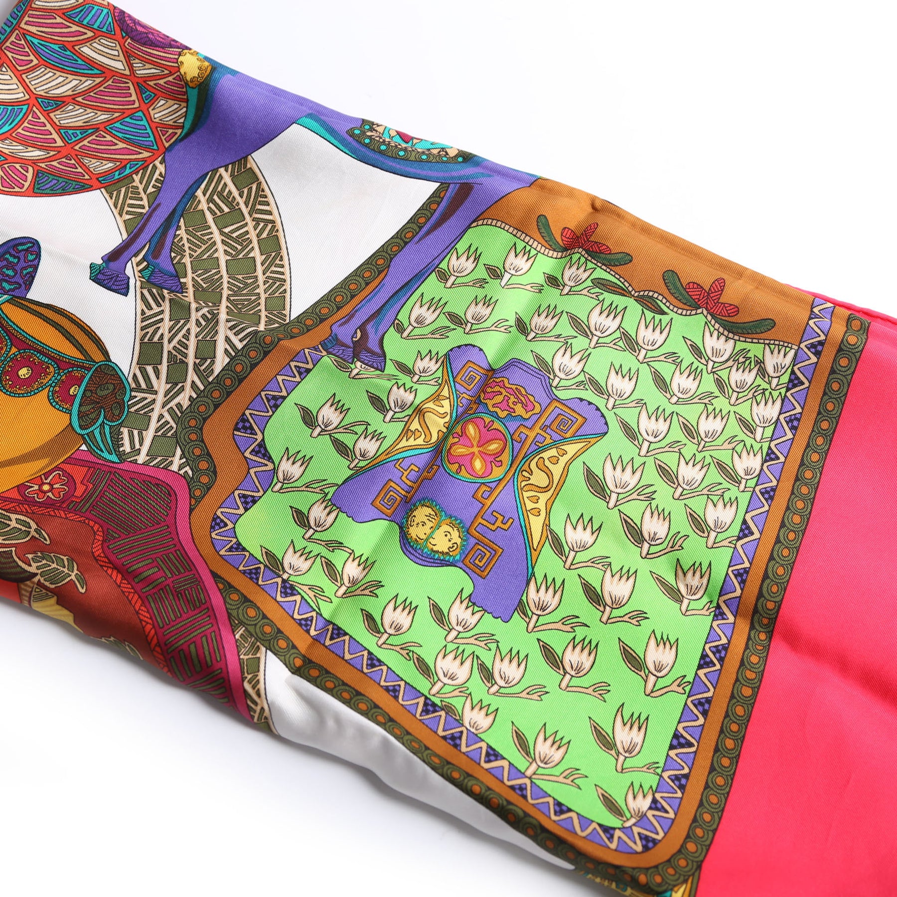 Art Des Steppes 90 Silk Scarf Red/Multicolor
